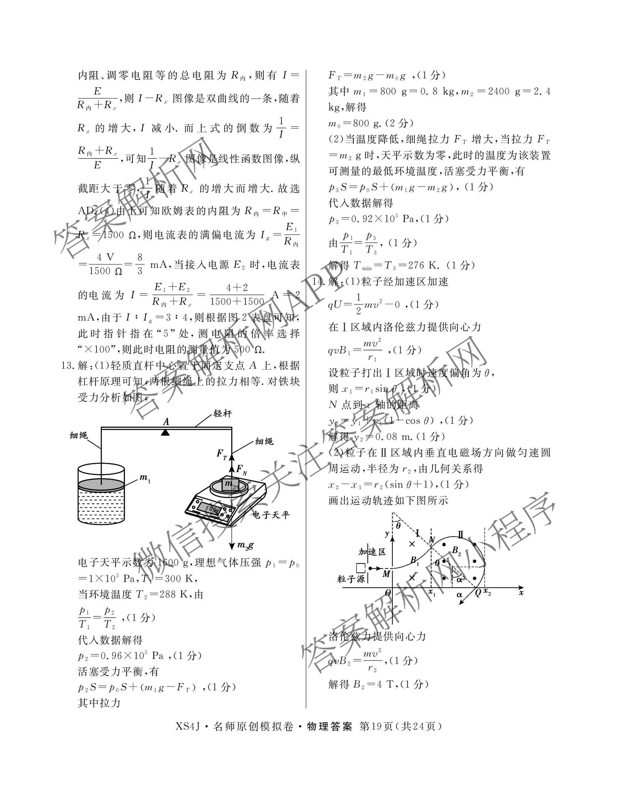 2024届高三总复习名师原创模拟 物理(XS4J)(十一)11答案