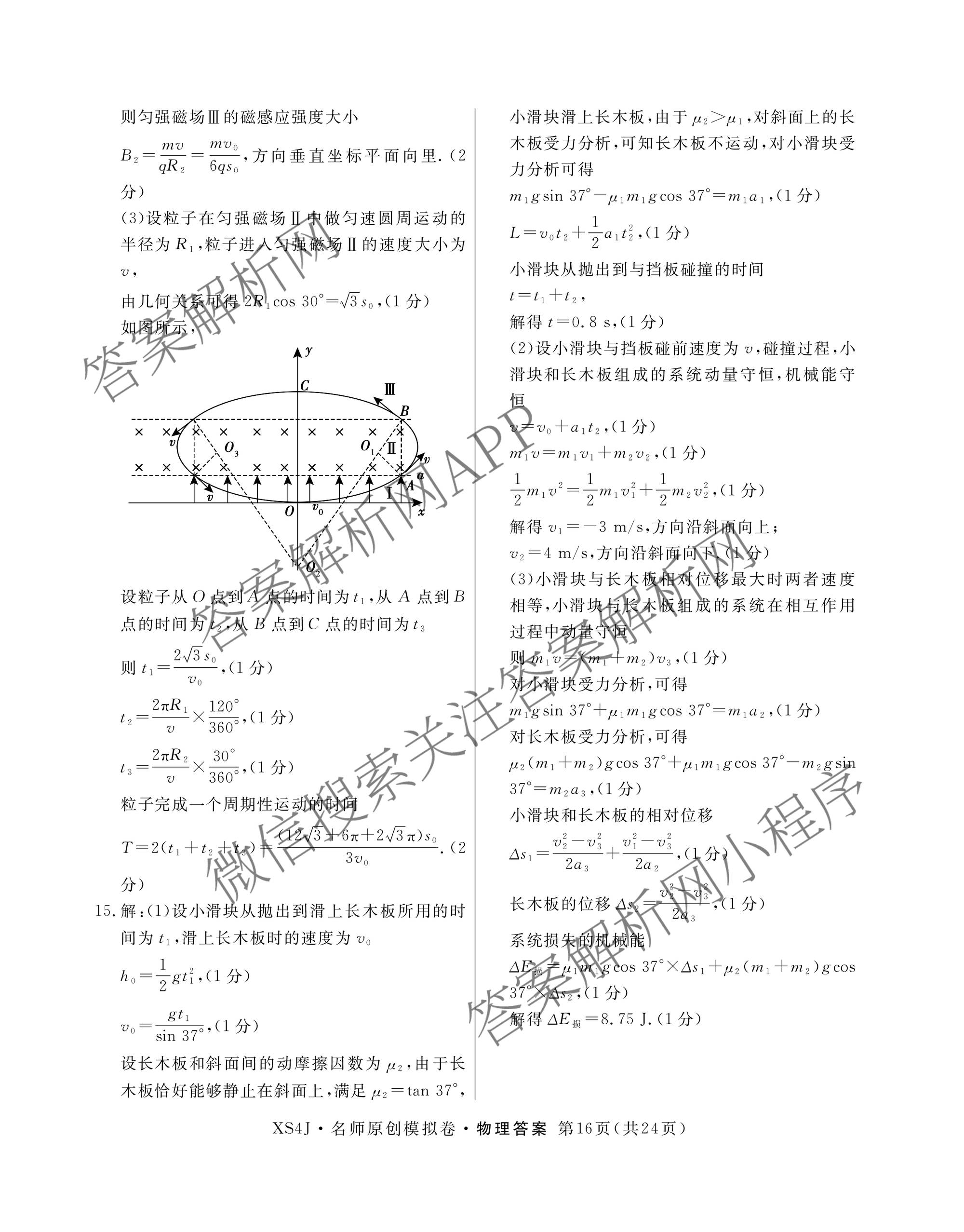 - 2024届(高三)[总复习·名师原创模拟] 物理(XS4J)(四)4答案