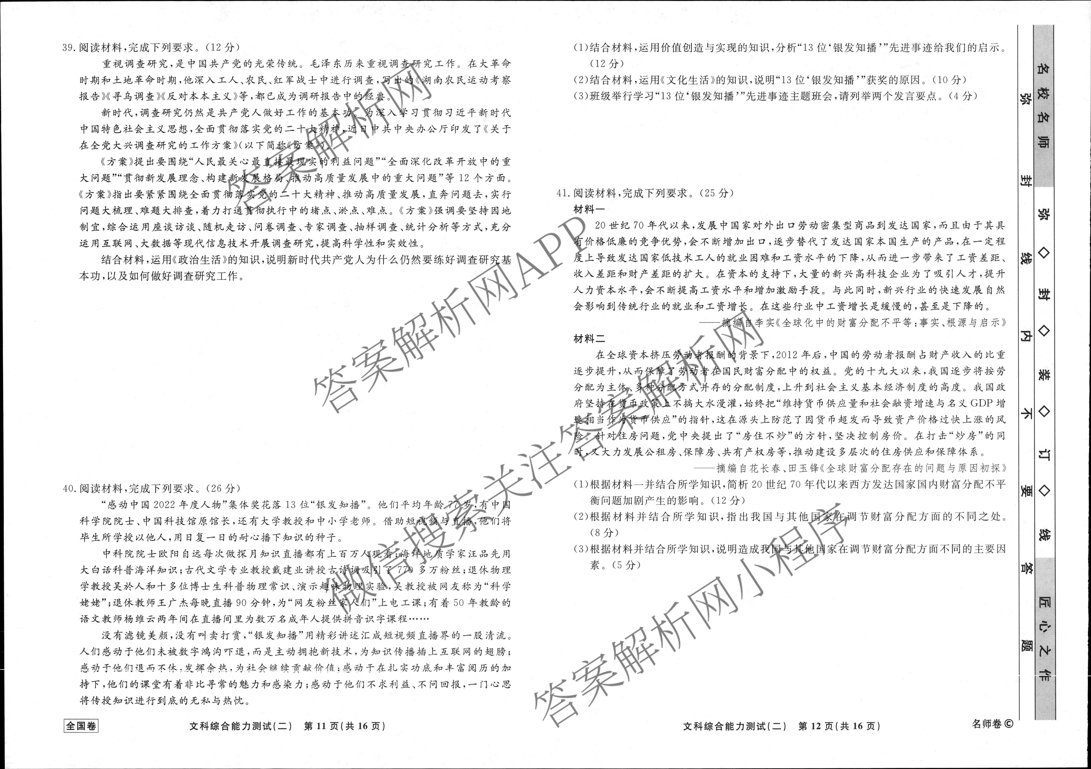 - 2023~2024[衡水名师卷]·学年度(高三)分科检测提分卷 文综(全国卷·空心菱形)(二)2答案