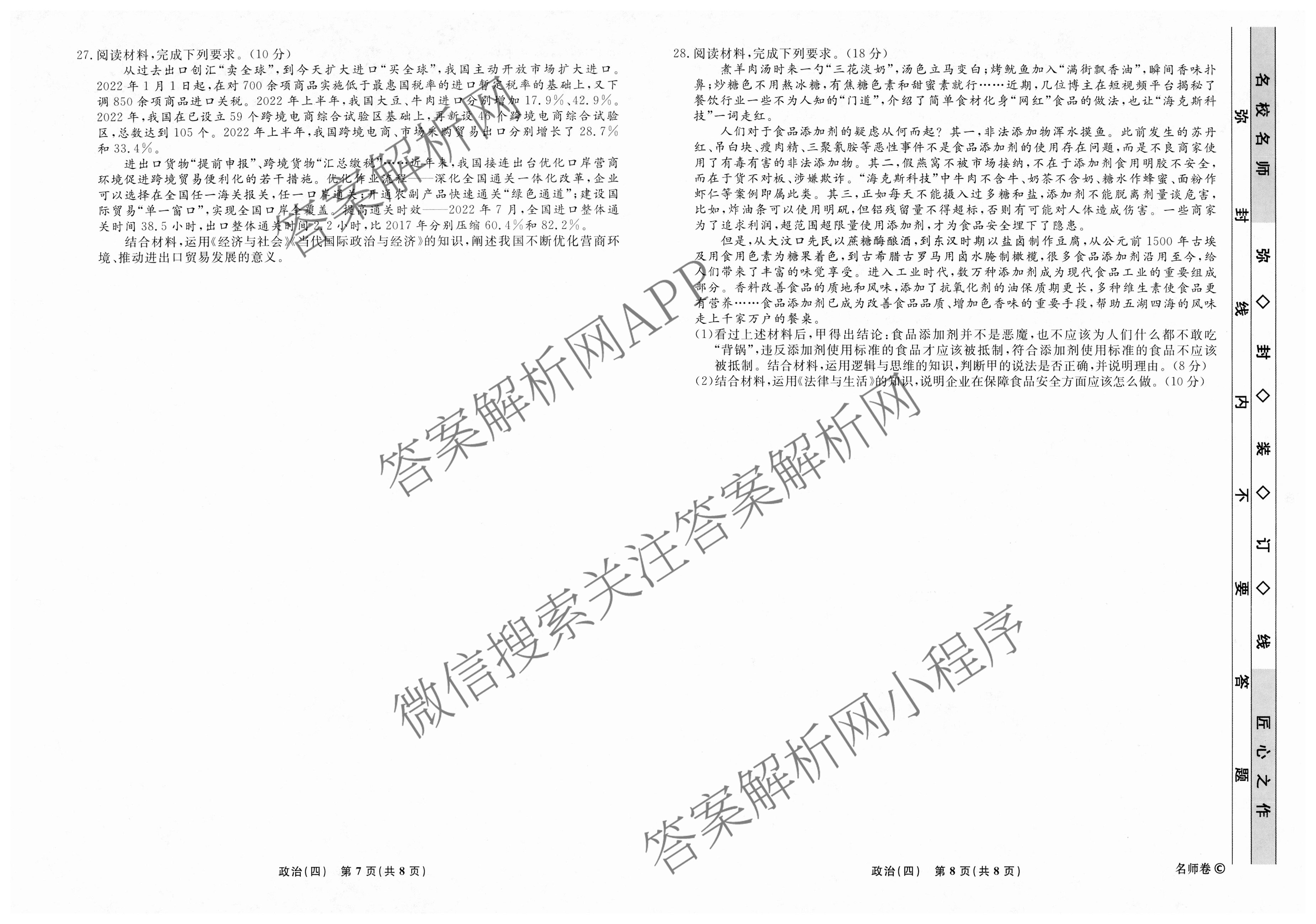 - [高三]衡水名师卷2023~2024学年度分科检测提分卷 政治(全国卷空心菱形)(四)4试题