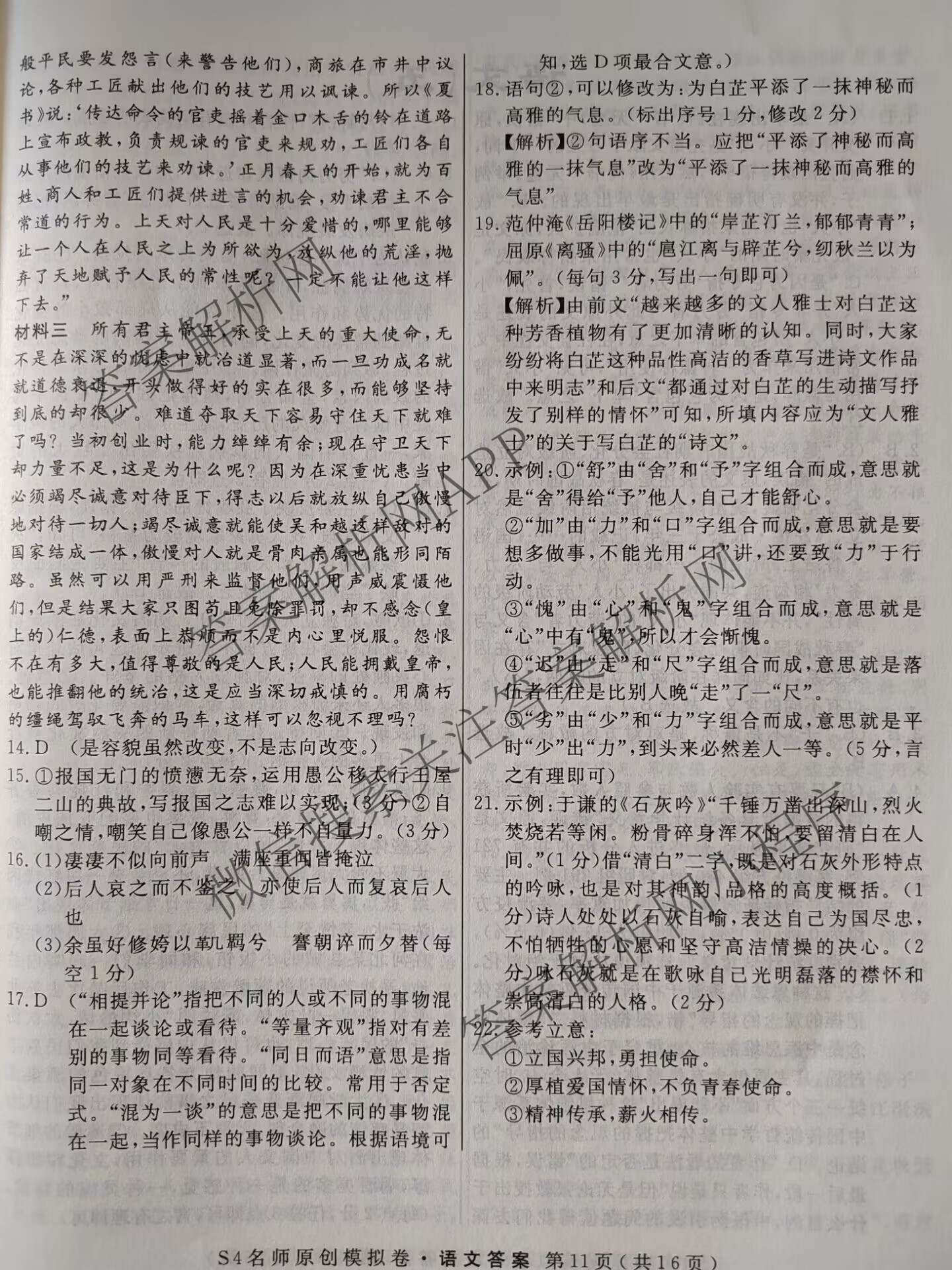 - 2024届(高三)总复习·名师原创模拟 语文(S4)(四)4答案