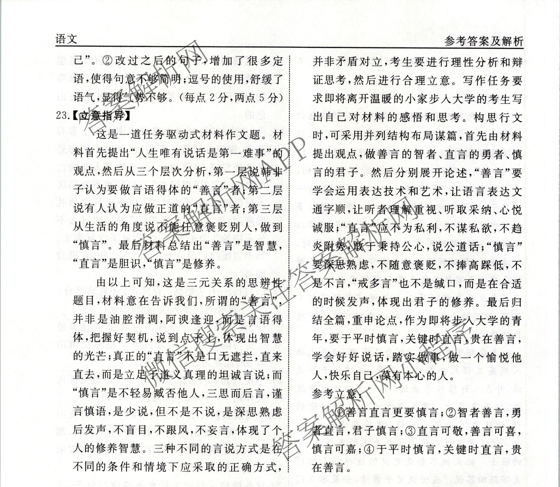 衡水名师卷高考模拟检测卷 2024年普通高等学校招生全国统一考试模拟试题 语文(二)2答案