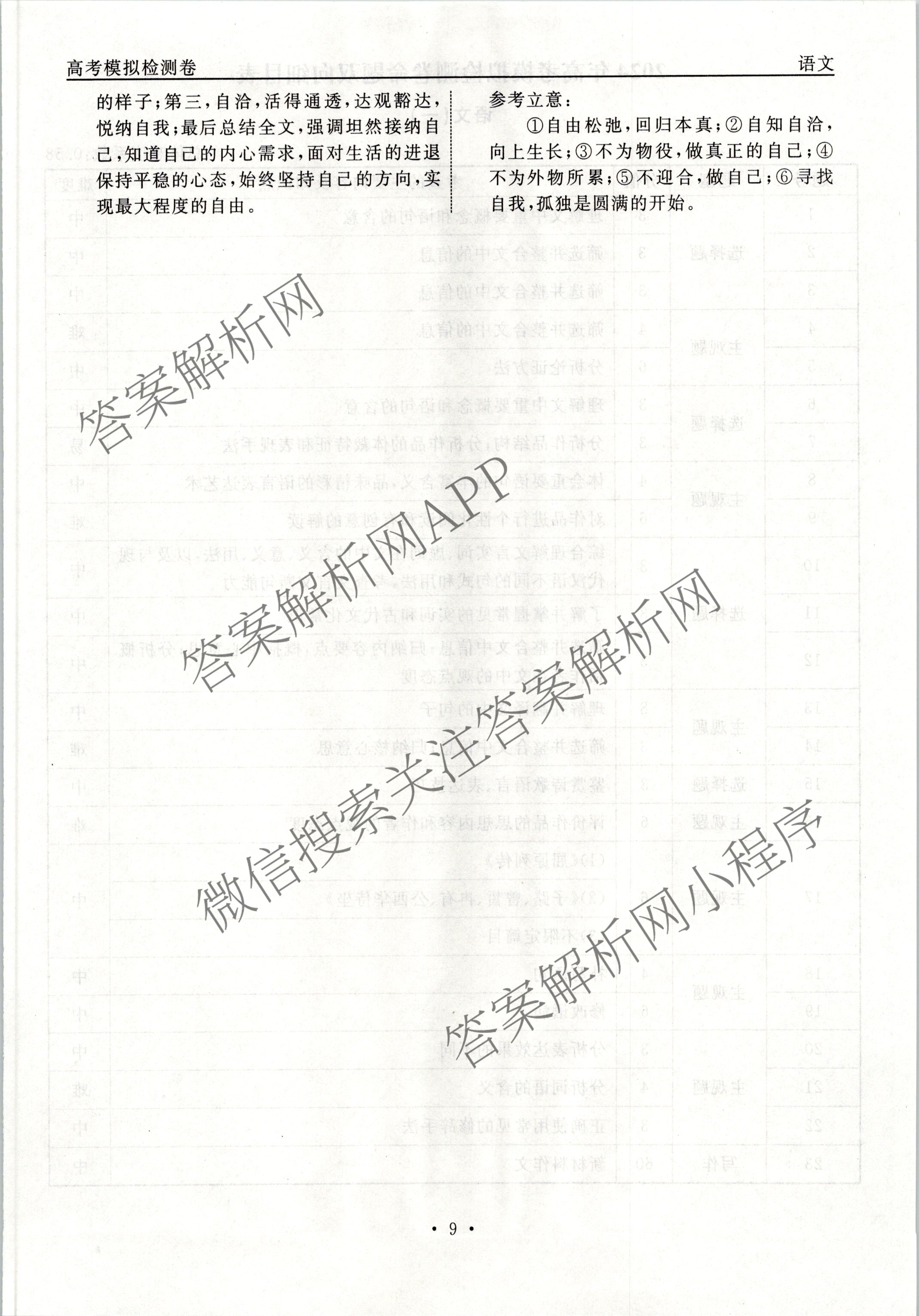 衡水名师卷高考模拟检测卷 2024年普通高等学校招生全国统一考试模拟试题 语文(三)3答案