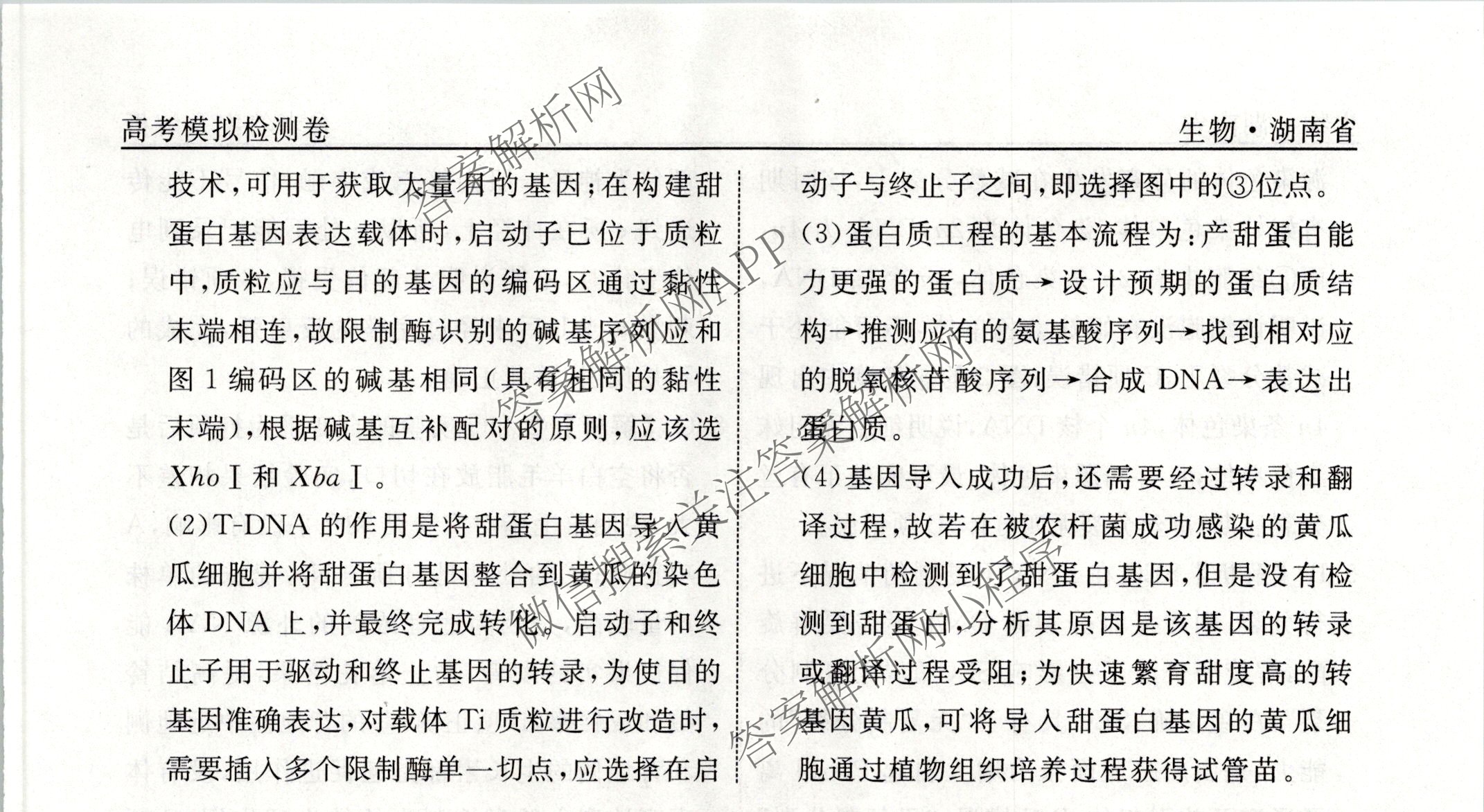 衡水名师卷高考模拟检测卷 湖南省2024年普通高等学校招生全国统一考试模拟试题 生物(二)2答案