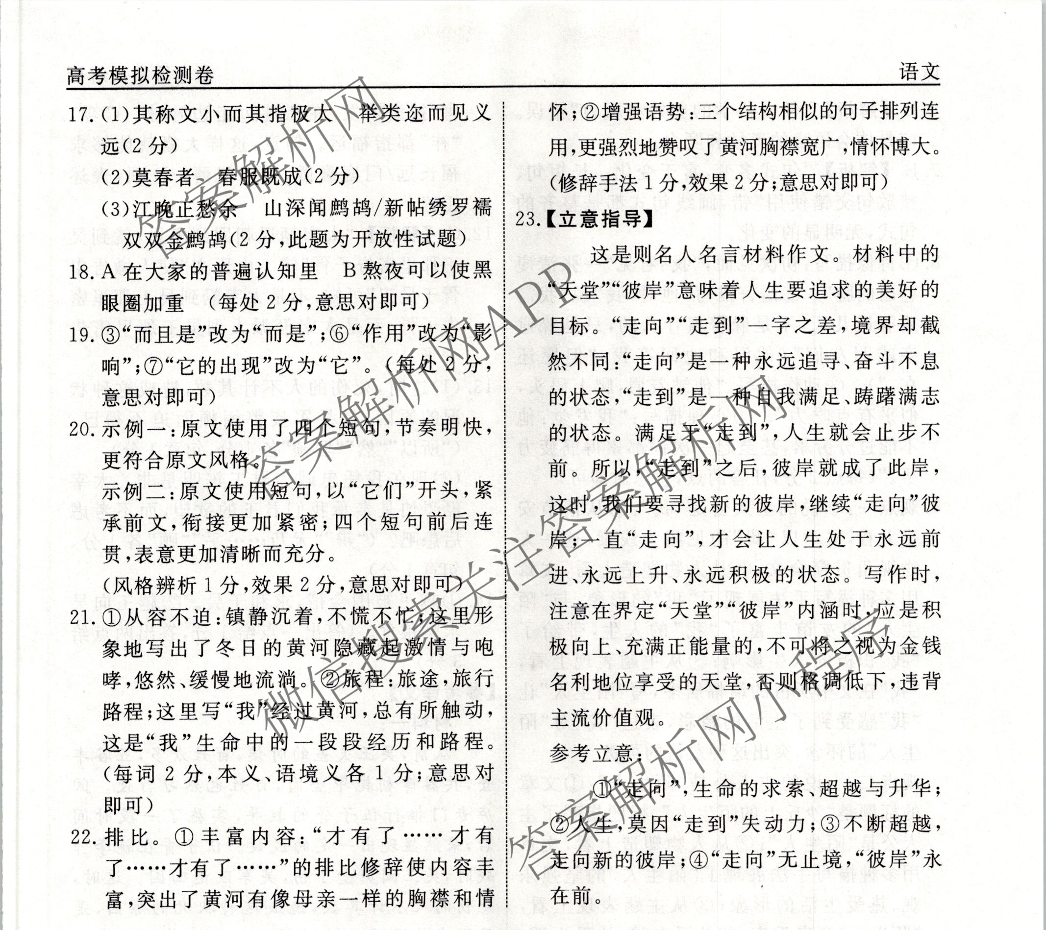 - (高三)(衡水名师卷)·高考模拟检测卷 2024年普通高等学校招生全国统一考试模拟试题 语文(一)1答案