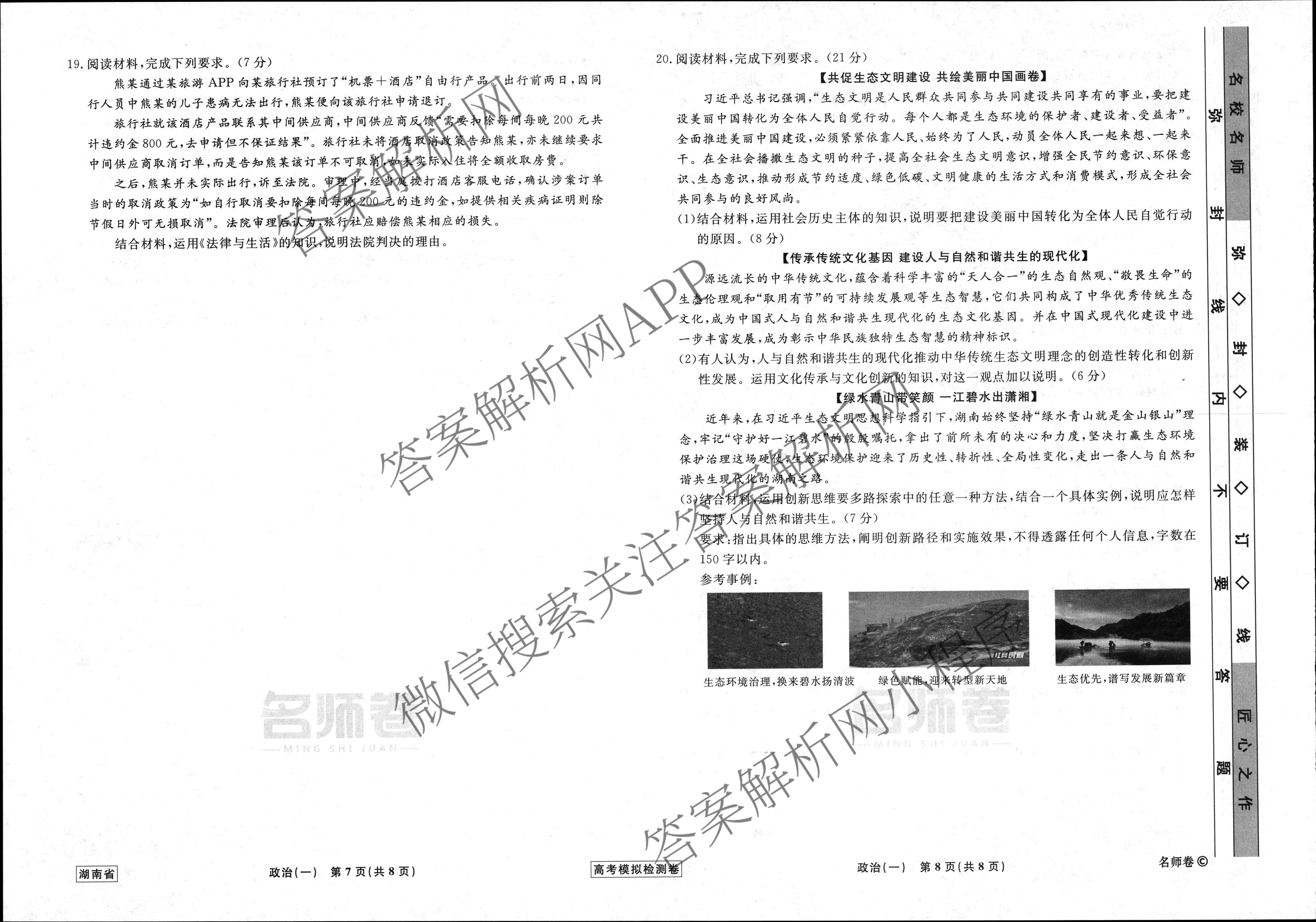 - (高三)衡水名师卷·高考模拟检测卷 湖南省2024年普通高等学校招生全国统一考试模拟试题 政治(一)1答案