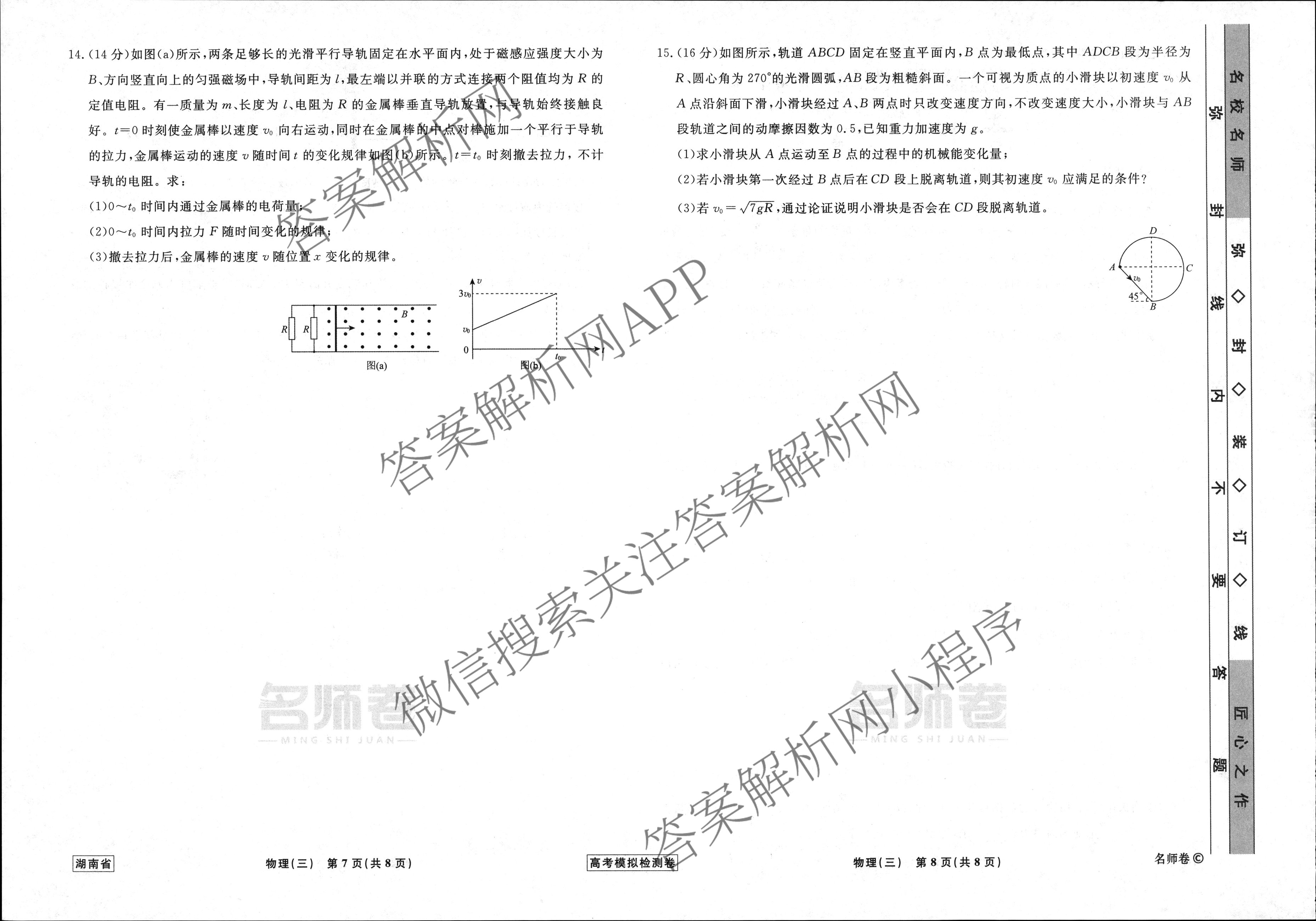 衡水名师卷·高考模拟检测卷 湖南省2024年普通高等学校招生全国统一考试模拟试题 物理(三)3试题,目前分科卷答案网已经汇总了衡水名师卷·高考模拟检测卷 湖南省2024年普通高等学校招生全国统一考试模拟试题 物理(三)3试题的各科答案和试卷,获取更多衡水名师卷答案解析,请在关注本站。