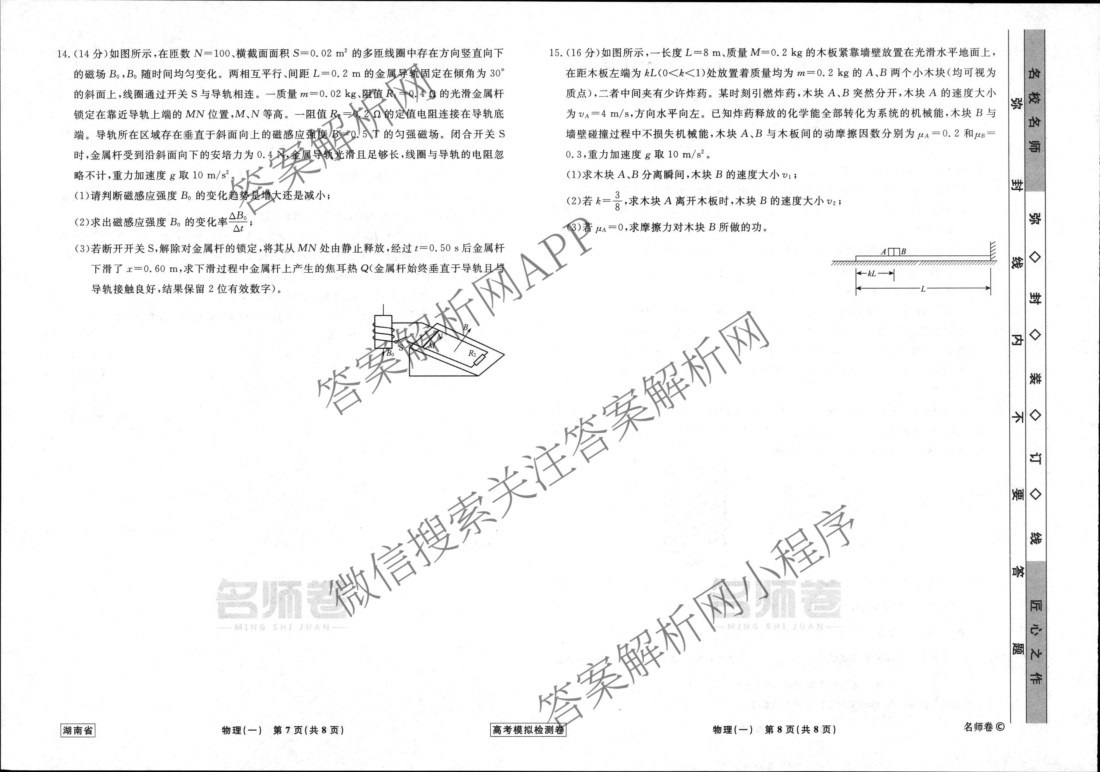- (高三)衡水名师卷高考模拟检测卷 湖南省2024年普通高等学校招生全国统一考试模拟试题 物理(一)1答案