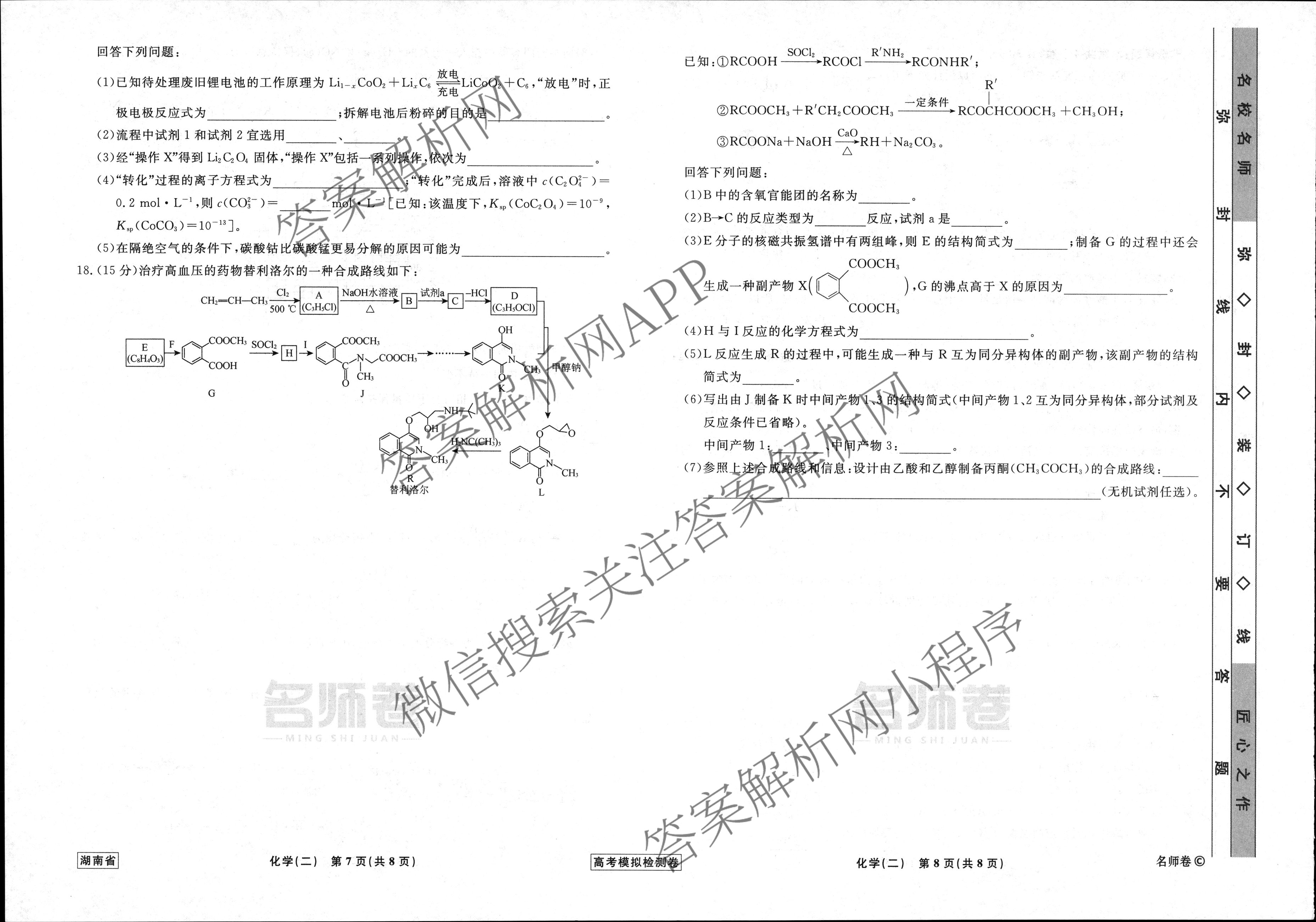 衡水名师卷·高考模拟检测卷 湖南省2024年普通高等学校招生全国统一考试模拟试题 化学(二)2试题,目前分科卷答案网已经汇总了衡水名师卷·高考模拟检测卷 湖南省2024年普通高等学校招生全国统一考试模拟试题 化学(二)2试题的各科答案和试卷,获取更多衡水名师卷答案解析,请在关注本站。