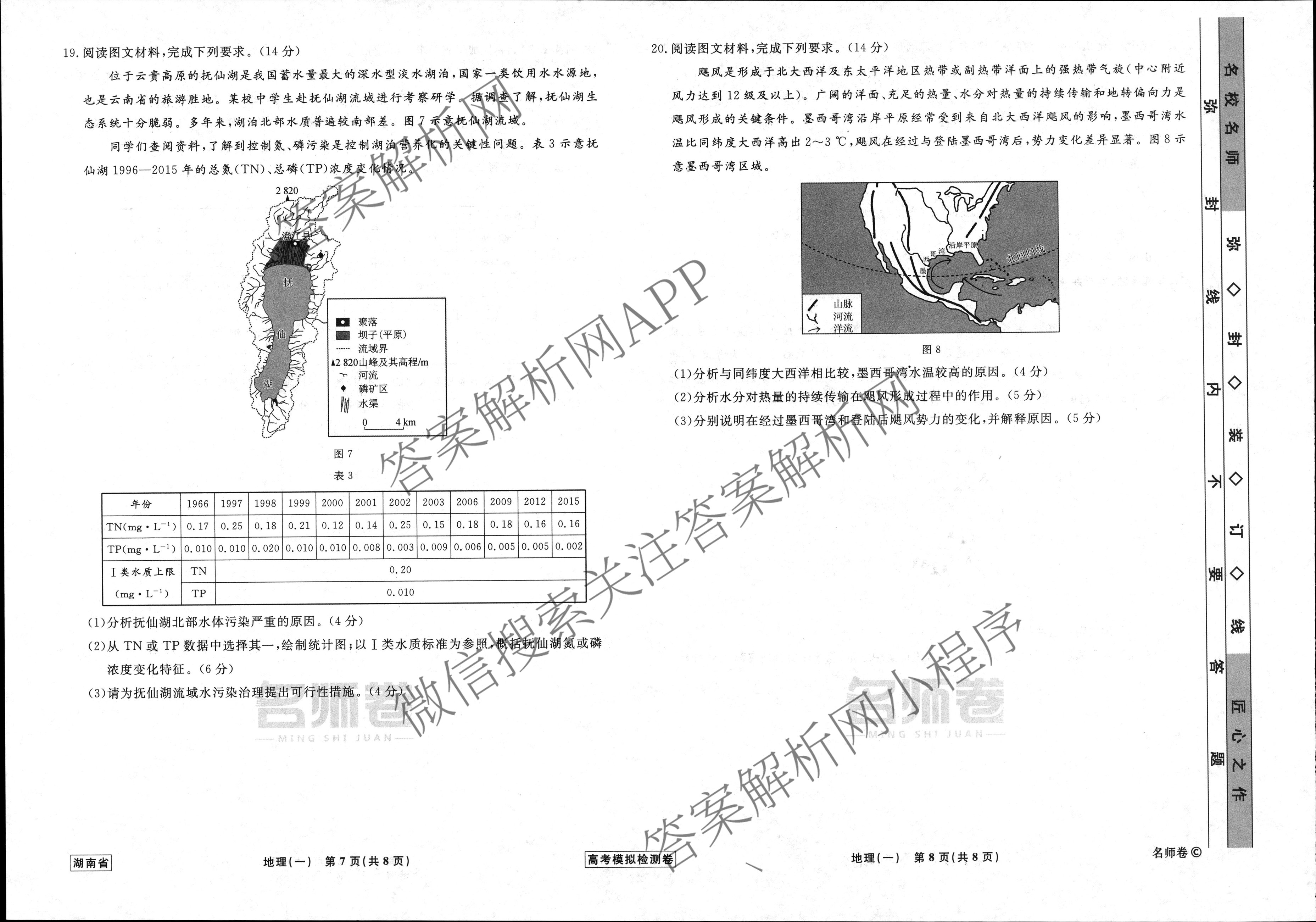 - [高三][衡水名师卷]·高考模拟检测卷 湖南省2024年普通高等学校招生全国统一考试模拟试题 地理(一)1答案