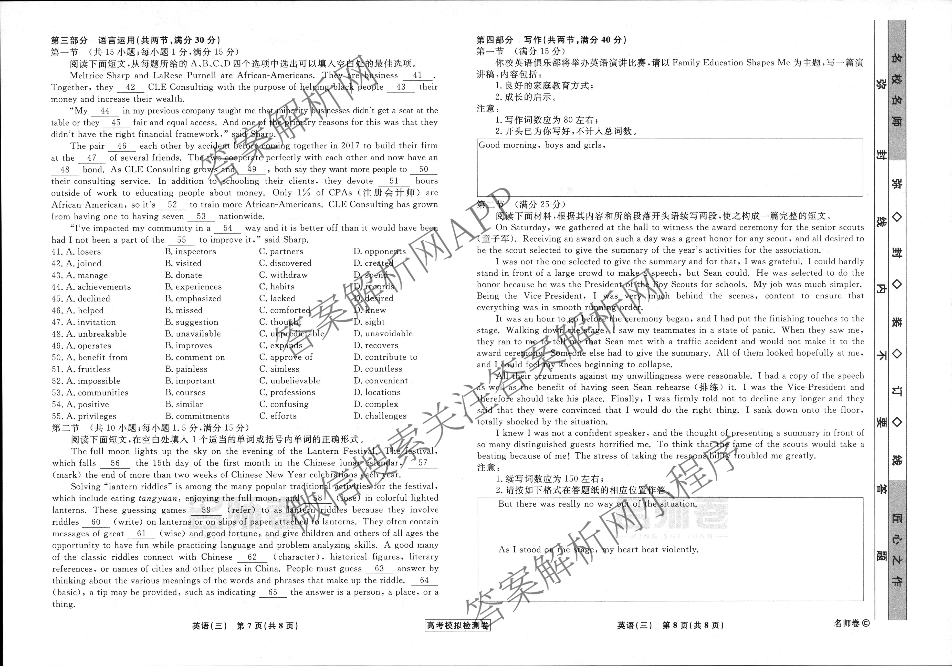 衡水名师卷·高考模拟检测卷 2024年普通高等学校招生全国统一考试模拟试题 英语(新教材)(三)3试题,目前分科卷答案网已经汇总了衡水名师卷·高考模拟检测卷 2024年普通高等学校招生全国统一考试模拟试题 英语(新教材)(三)3试题的各科答案和试卷,获取更多衡水名师卷答案解析,请在关注本站。
