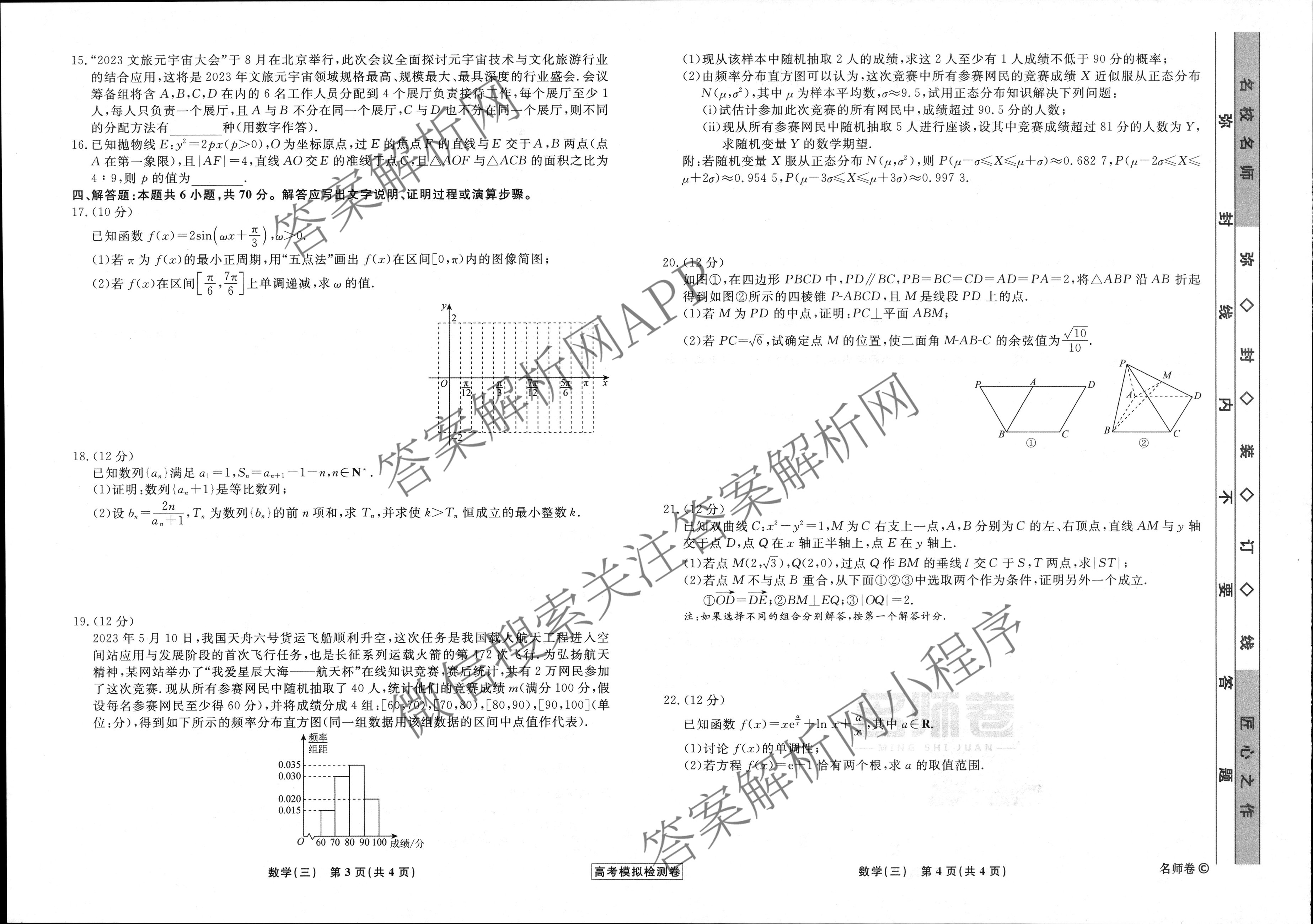 衡水名师卷高考模拟检测卷 2024年普通高等学校招生全国统一考试模拟试题 数学(三)3试题