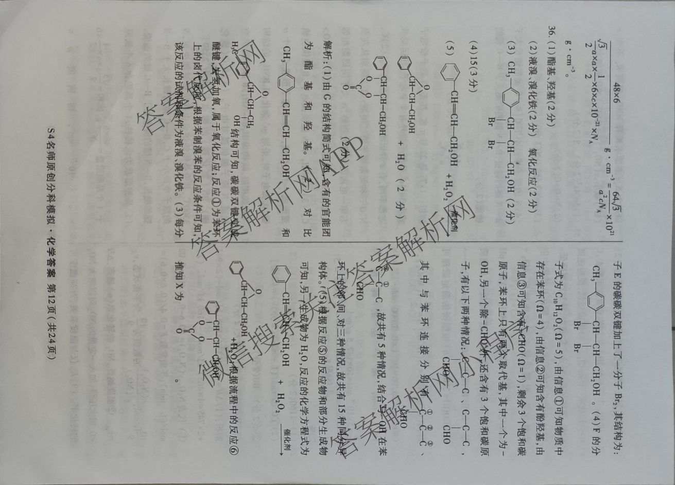 - 2024届[高三]总复习名师原创分科模拟 化学(S4)(三)3答案