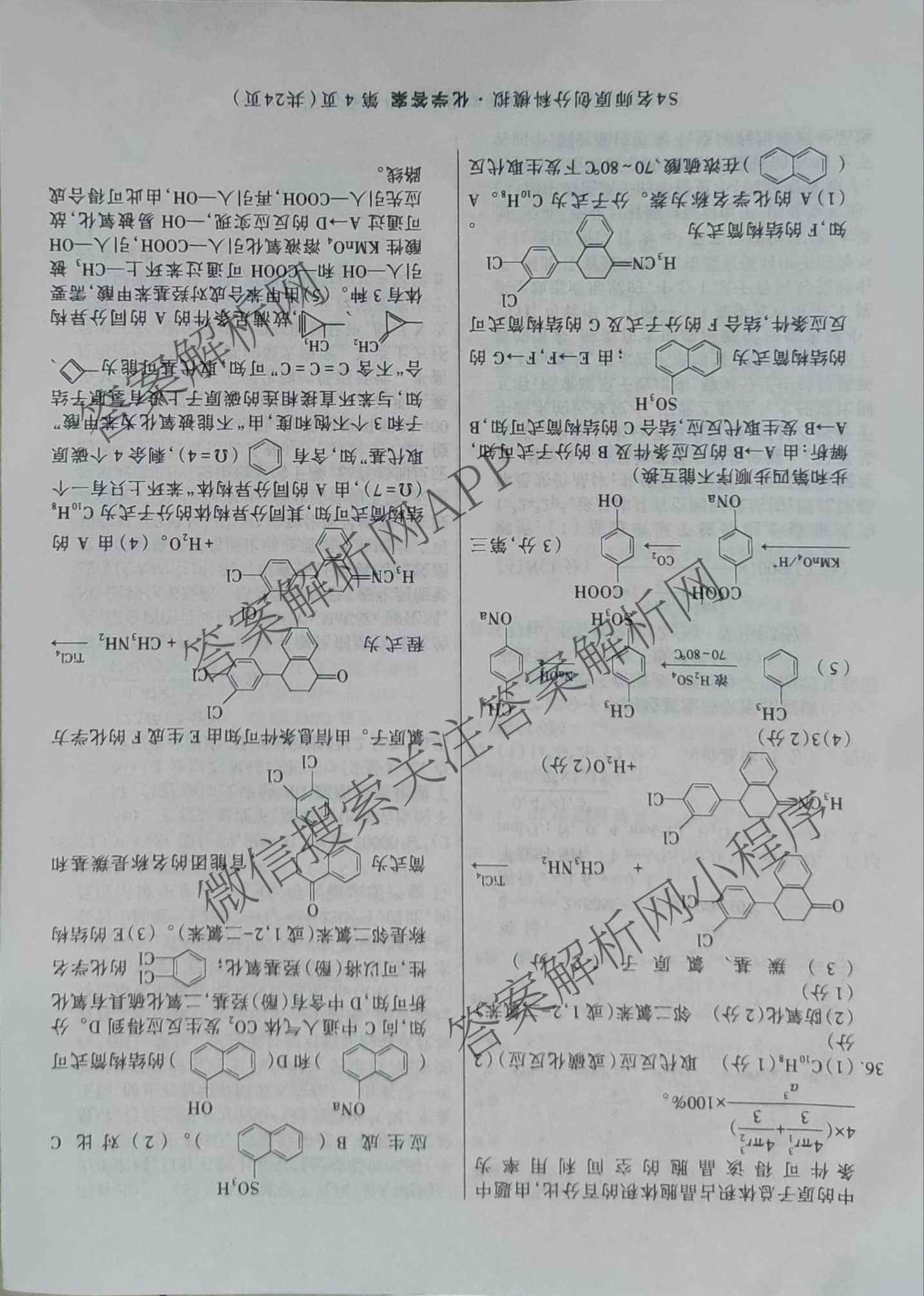 - 2024届高三总复习名师原创分科模拟 化学(S4)(一)1答案