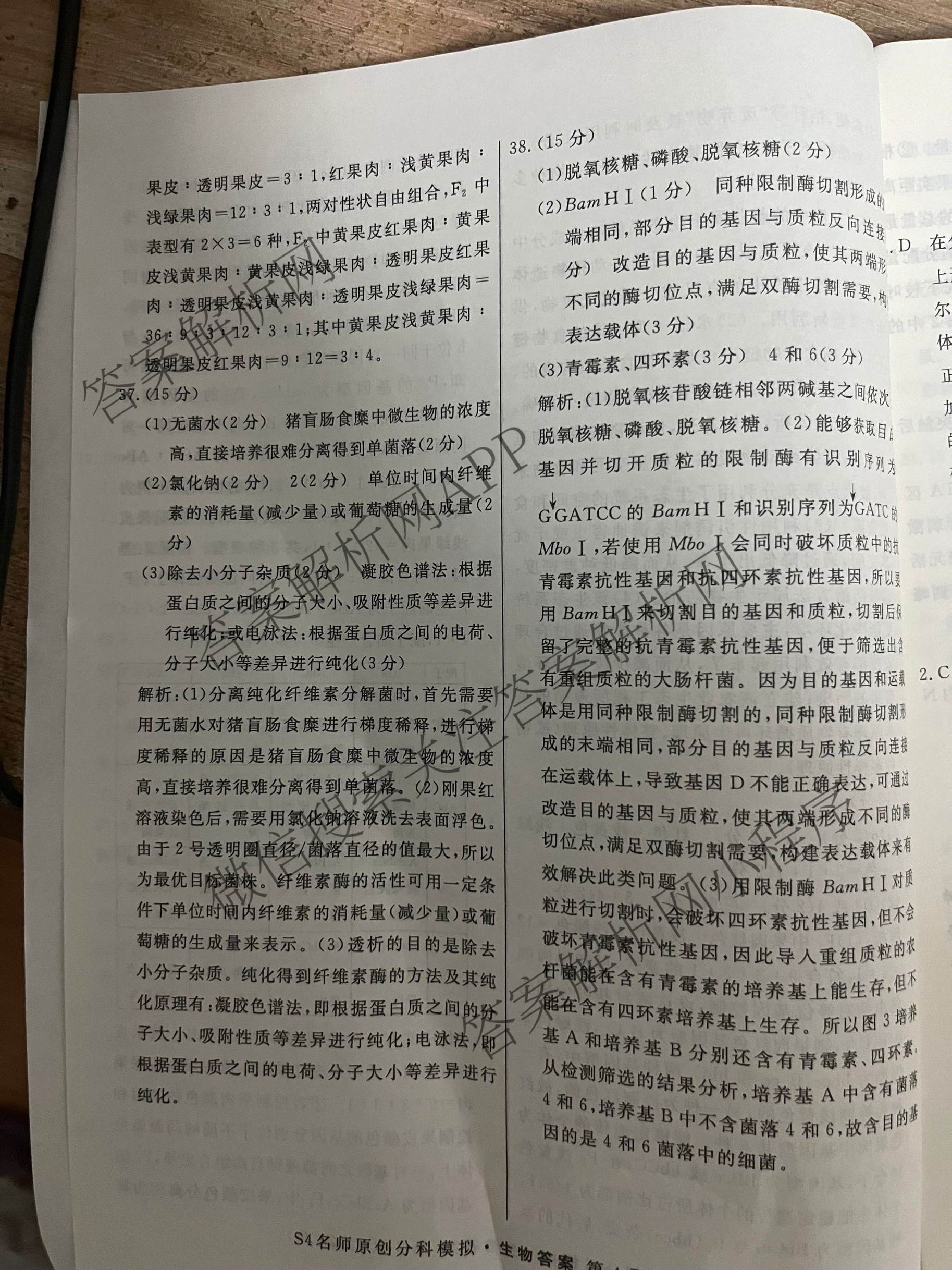 - [高三]2024届[总复习·名师原创模拟]卷 理综(S4)(一)1答案