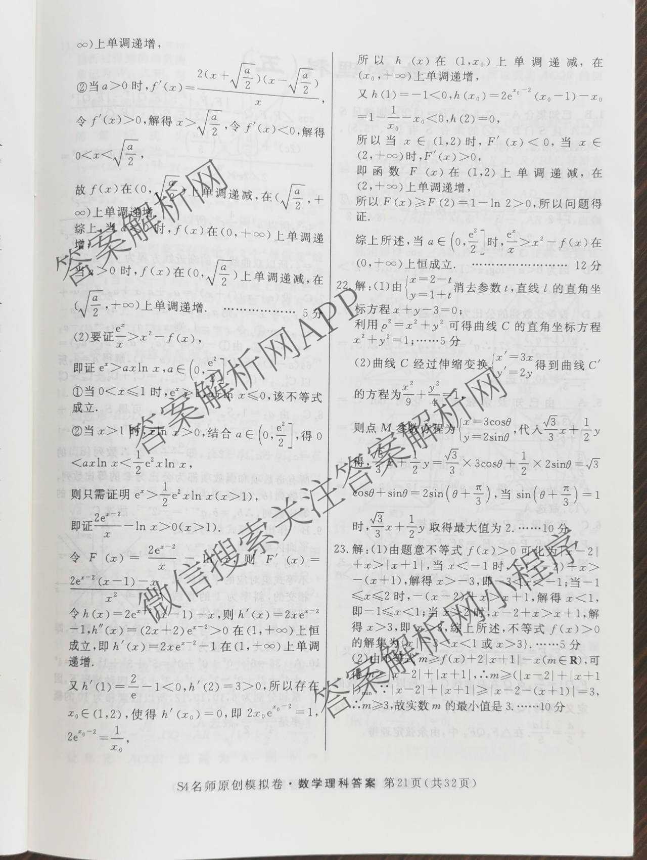 2024届[[高三]总复习·名师原创模拟]卷·理数(S4)(四)4答案