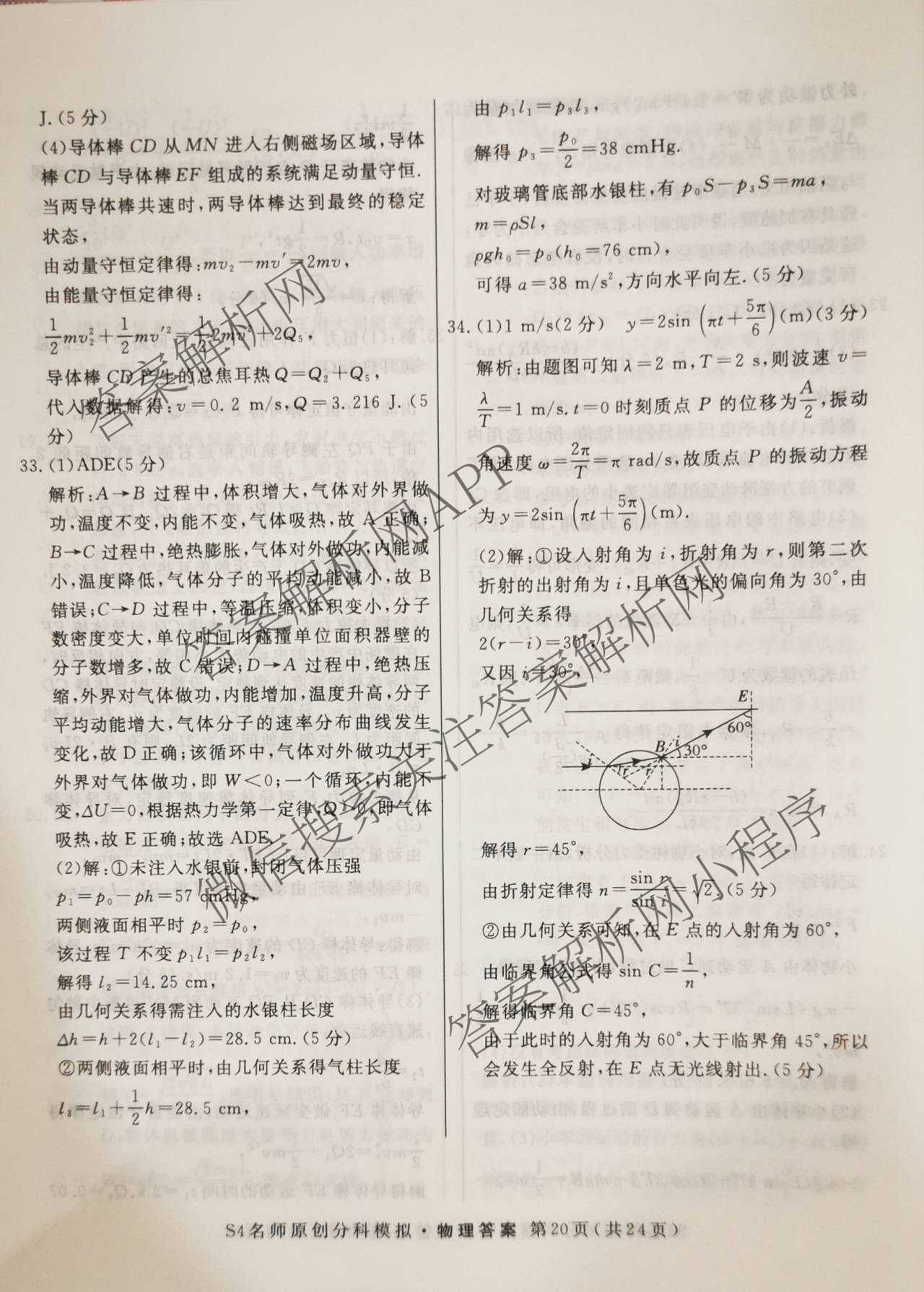 - (高三)2024届总复习·名师原创分科模拟 物理(S4)(五)5答案