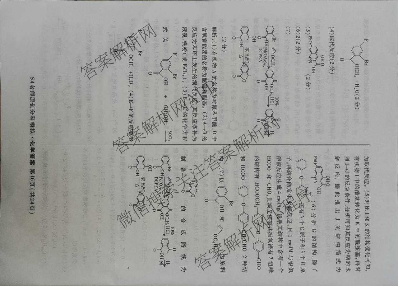 - 2024届[高三]总复习·名师原创分科模拟 化学(S4)(四)4答案