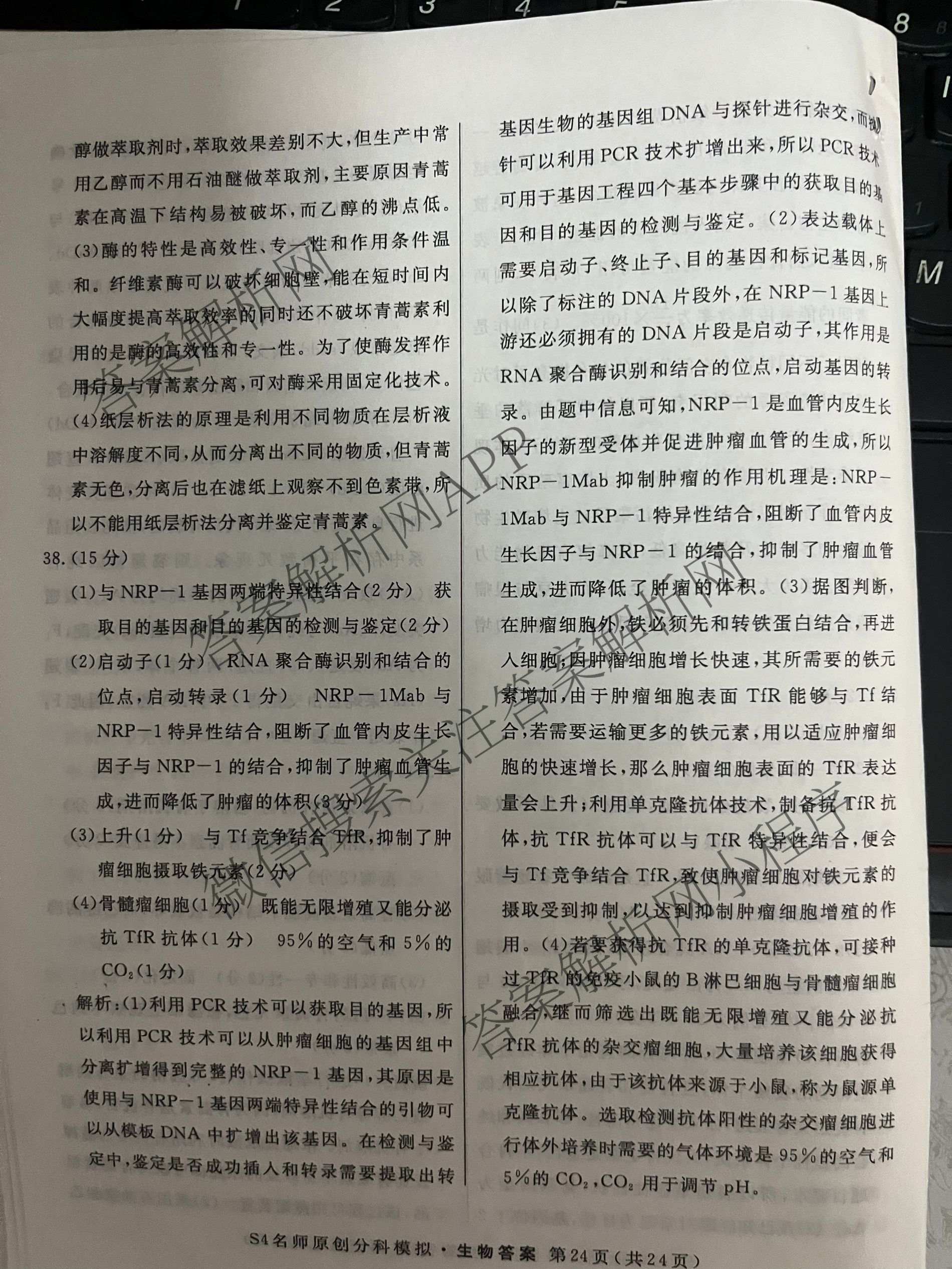 - 2024届[高三]总复习名师原创分科模拟 生物(S4)(六)6答案