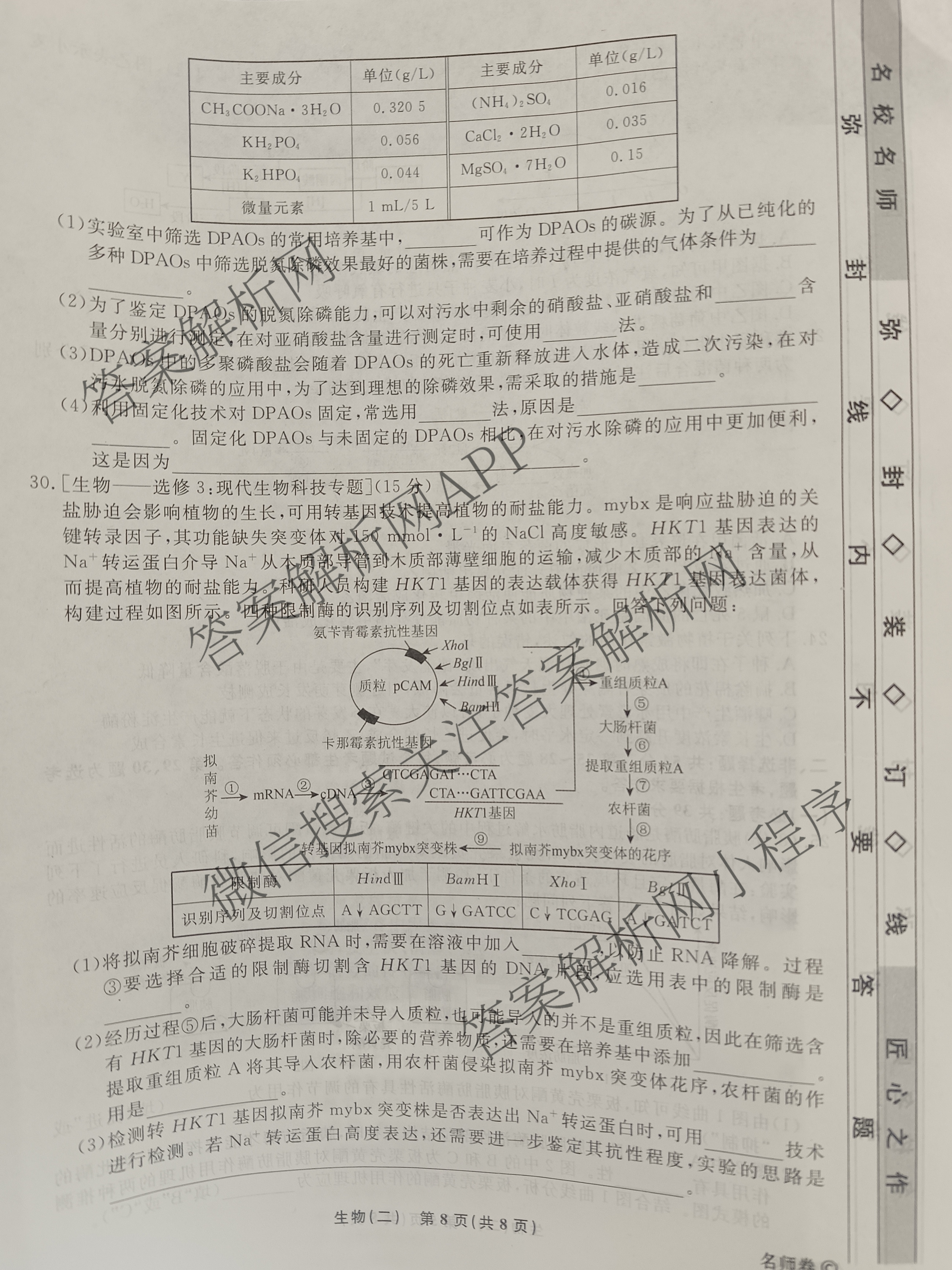 衡水名师卷·2023-2024学年度高三分科检测提分卷·生物(全国卷·空心菱形)(二)2试题,目前分科卷答案网已经汇总了衡水名师卷·2023-2024学年度高三分科检测提分卷·生物(全国卷·空心菱形)(二)2试题的各科答案和试卷,获取更多衡水名师卷答案解析,请在关注本站。