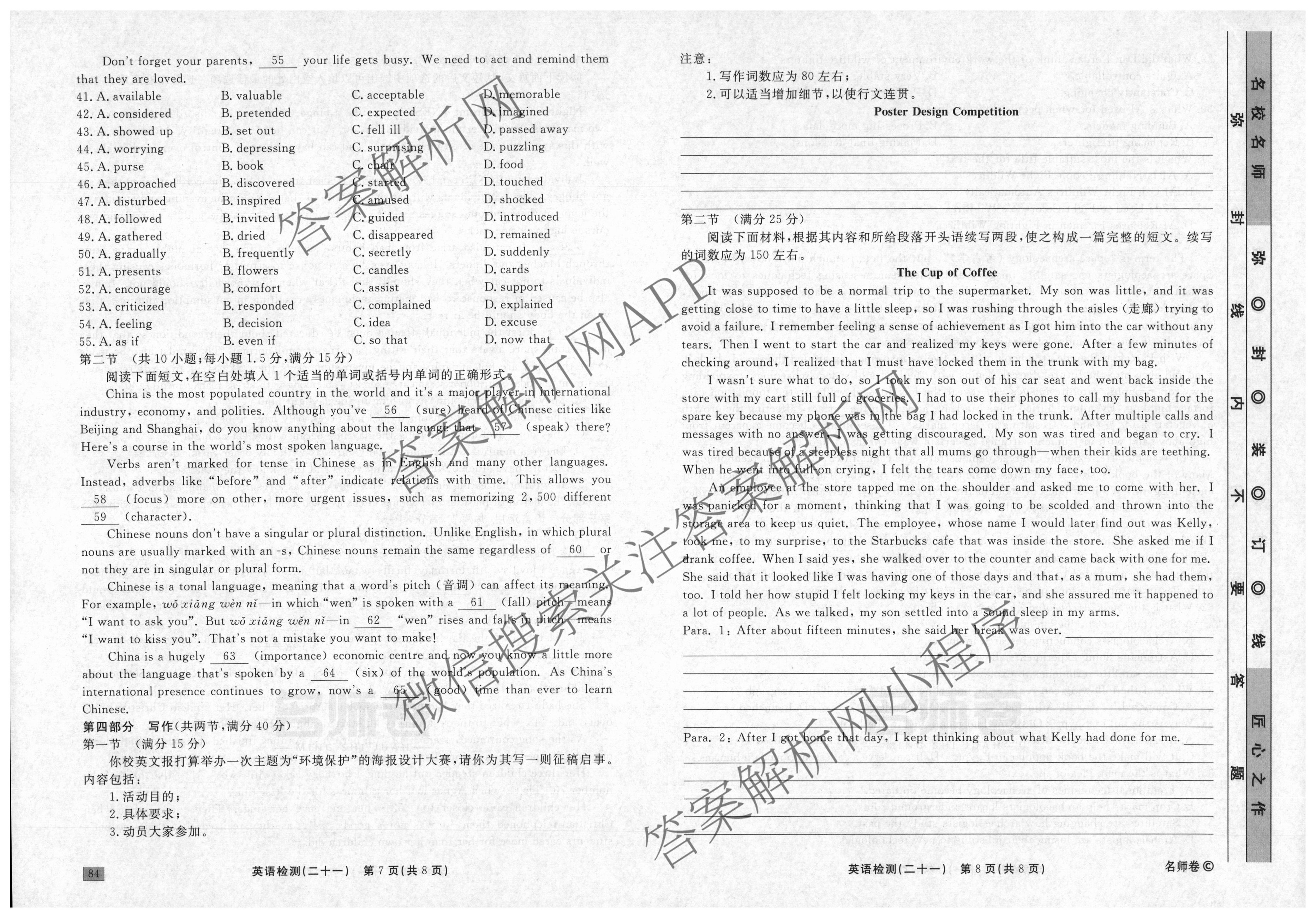 衡水名师卷·2023-2024学年度高三一轮复习单元检测卷·英语(同心圆)·检测(二十一)21试题,目前分科卷答案网已经汇总了衡水名师卷·2023-2024学年度高三一轮复习单元检测卷·英语(同心圆)·检测(二十一)21试题的各科答案和试卷,获取更多衡水名师卷答案解析,请在关注本站。