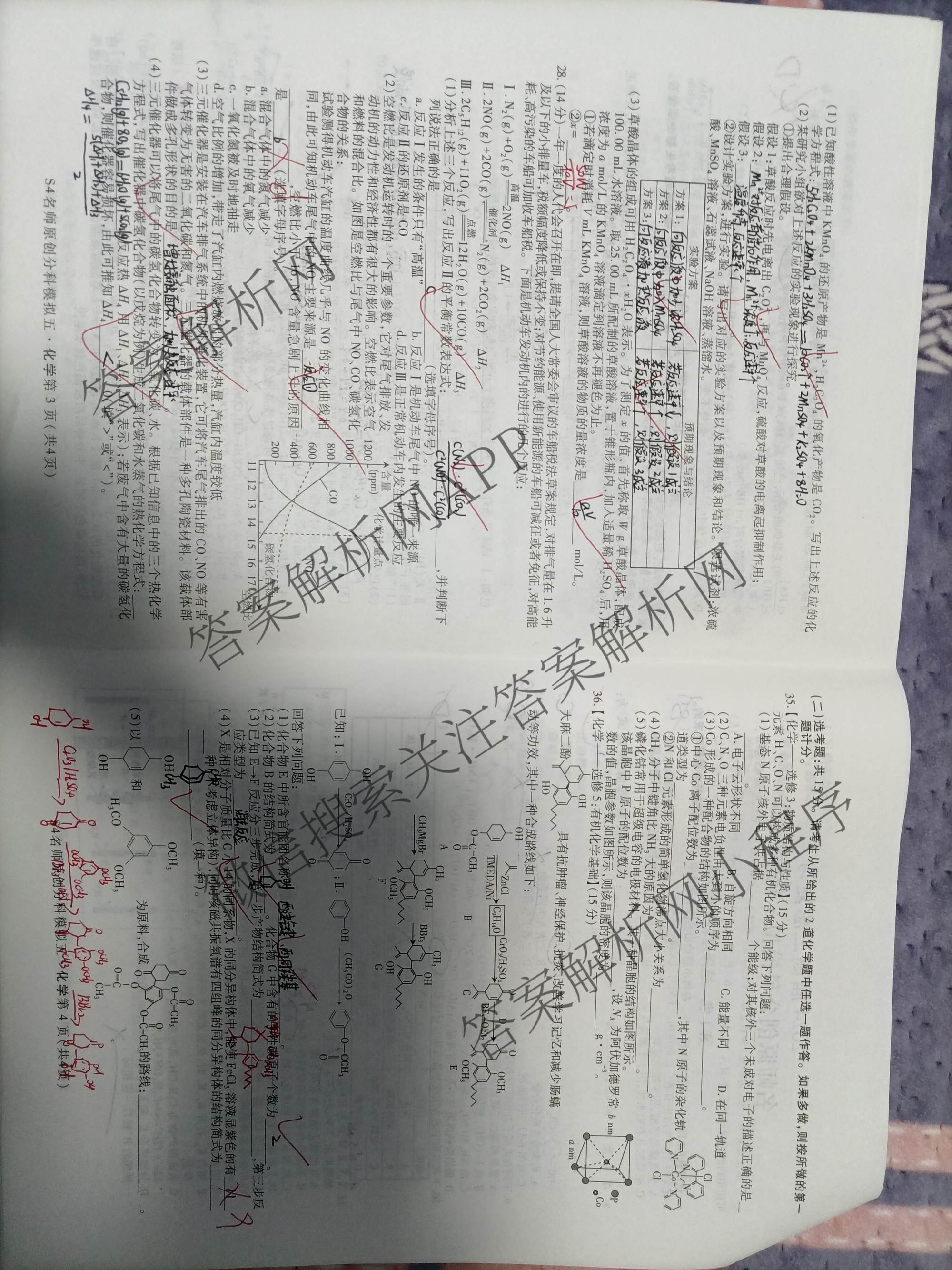 - [高三]2024届总复习名师原创分科模拟 化学(S4)(五)5答案