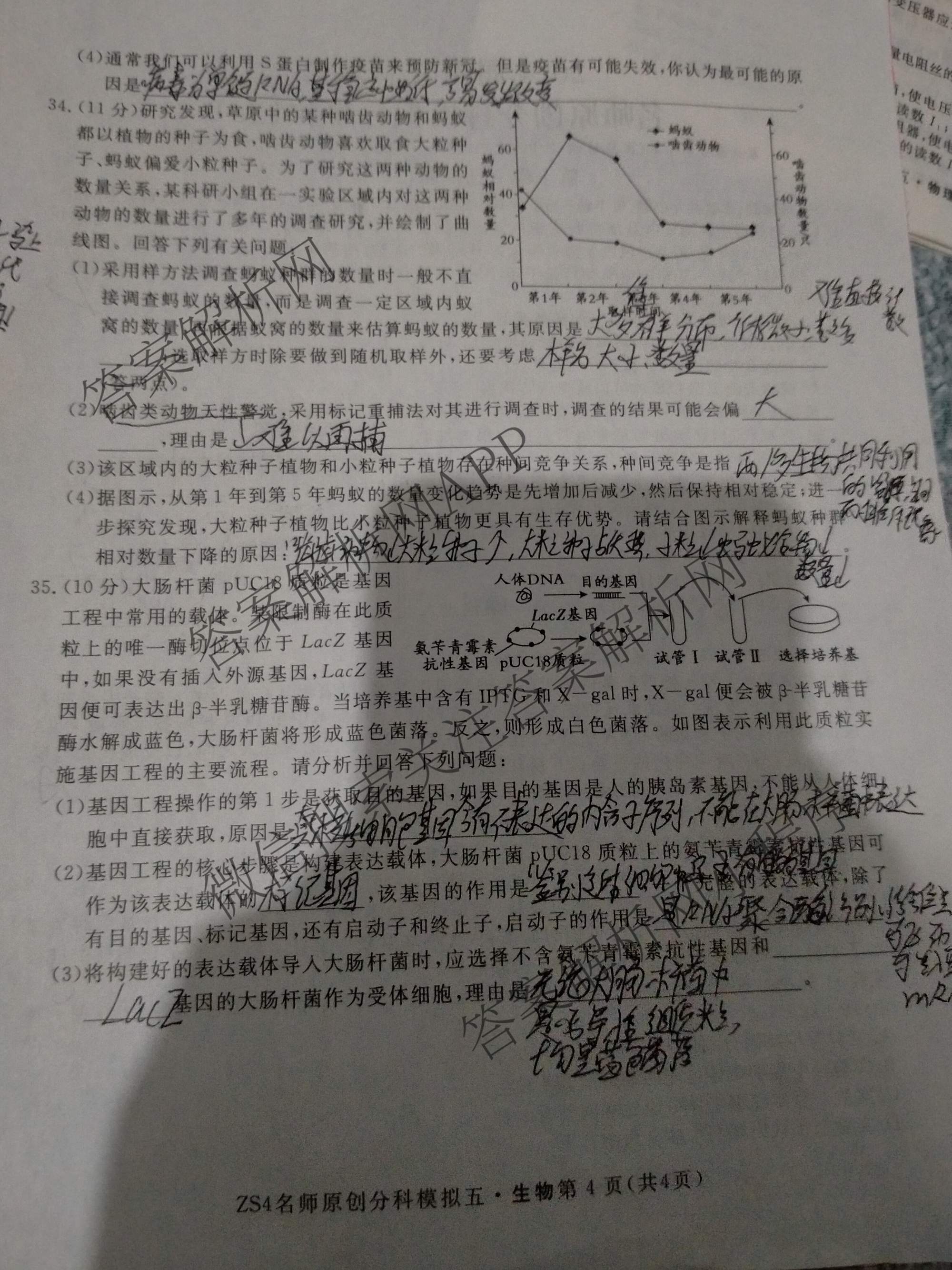 - 2024届[高三总复习名师原创模拟]卷 理综(ZS4)(五)5答案