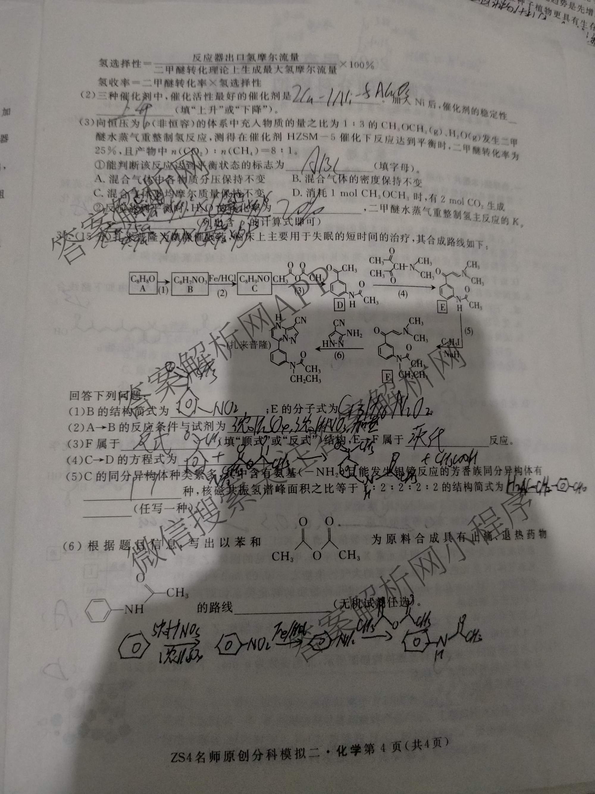 - 2024届[高三]总复习·名师原创分科模拟 化学(ZS4)(二)2答案