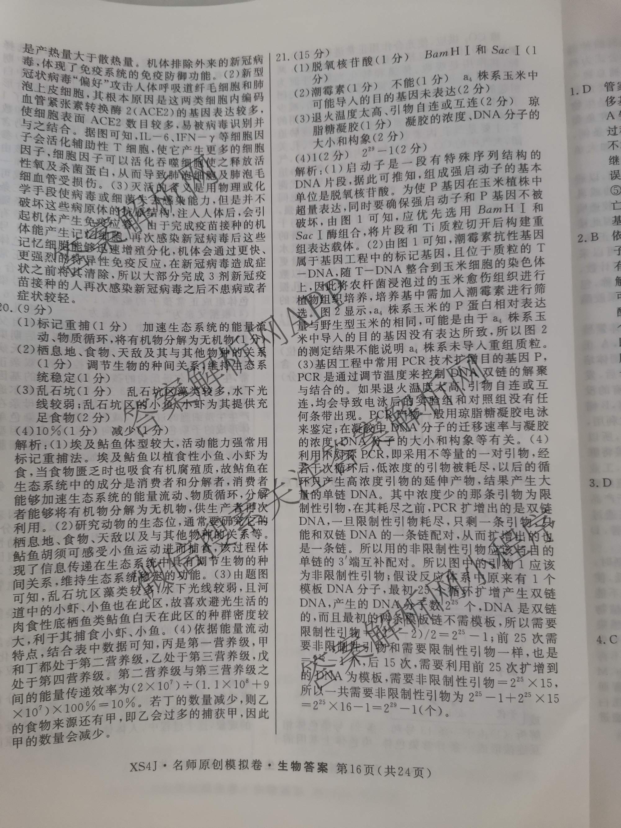 2024届高三总复习·名师原创模拟 生物(XS4J)(十)10答案,目前分科卷答案网已经汇总了2024届高三总复习·名师原创模拟 生物(XS4J)(十)10答案的各科答案和试卷,获取更多高三总复习·名师原创模拟答案解析,请在关注本站。