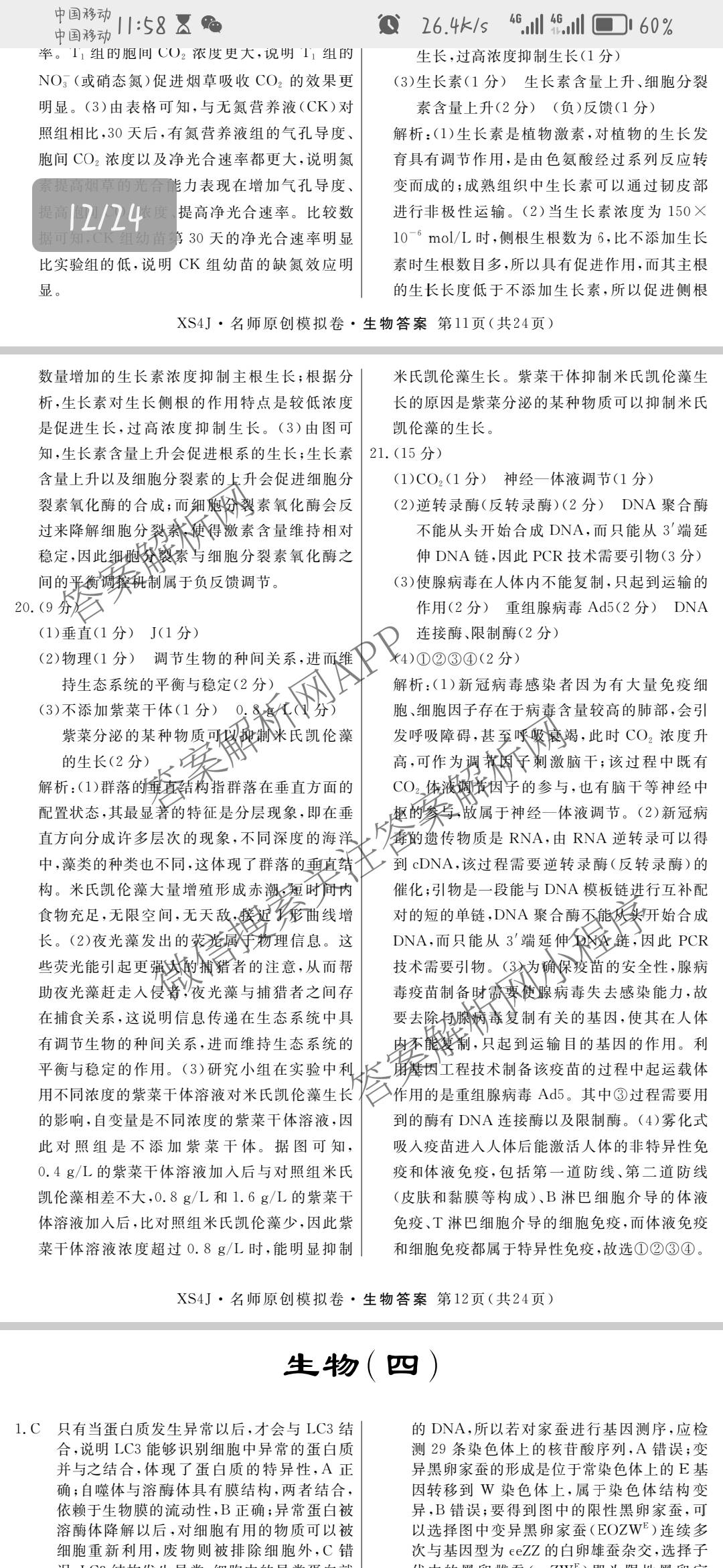 2024届[(高三)总复习名师原创模拟] 生物(XS4J)(三)3答案