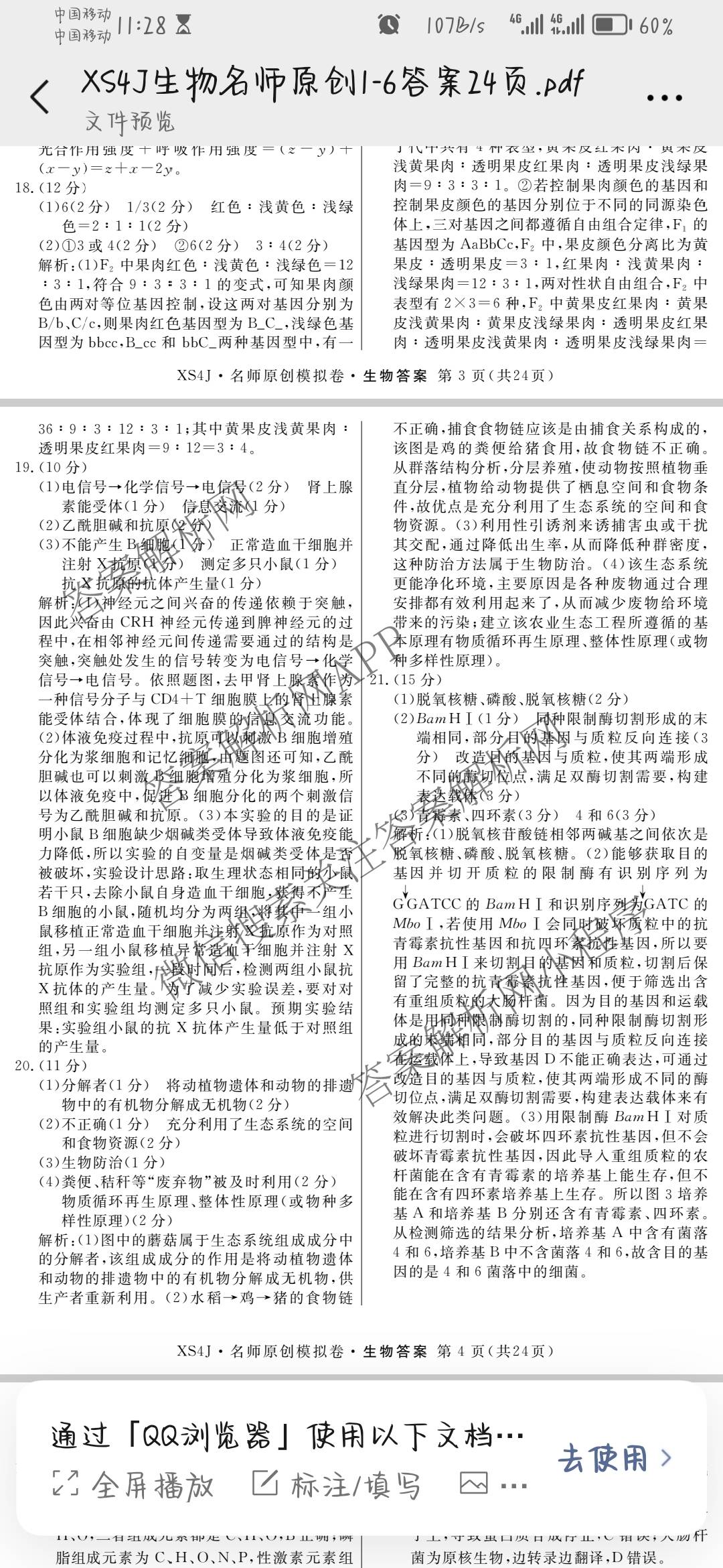 - 2024届高三总复习名师原创分科模拟 生物(S4)(一)1答案