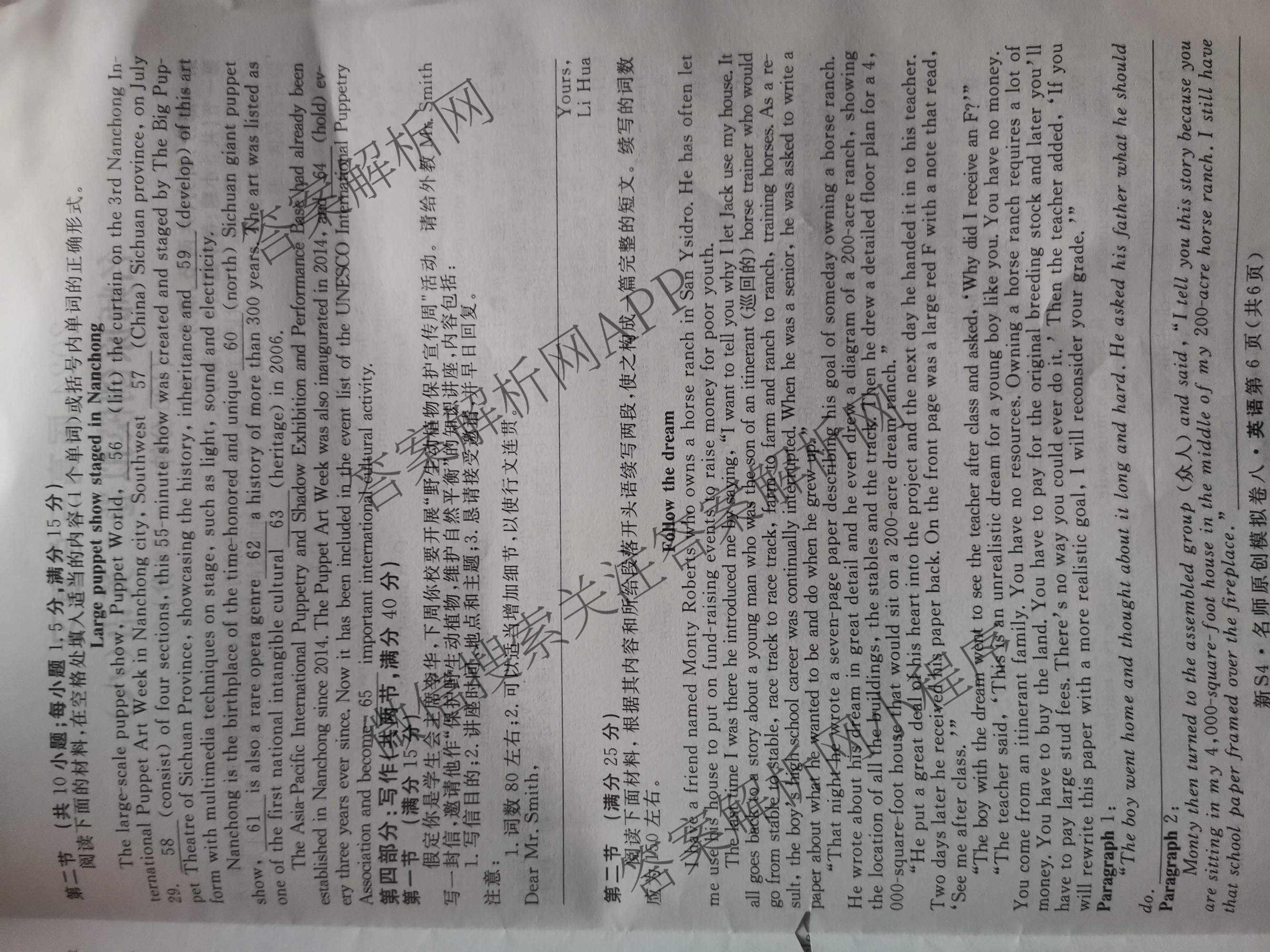 2024届高三总复习·名师原创模拟 英语(新S4)(八)8试题,目前分科卷答案网已经汇总了2024届高三总复习·名师原创模拟 英语(新S4)(八)8试题的各科答案和试卷,获取更多高三总复习·名师原创模拟答案解析,请在关注本站。