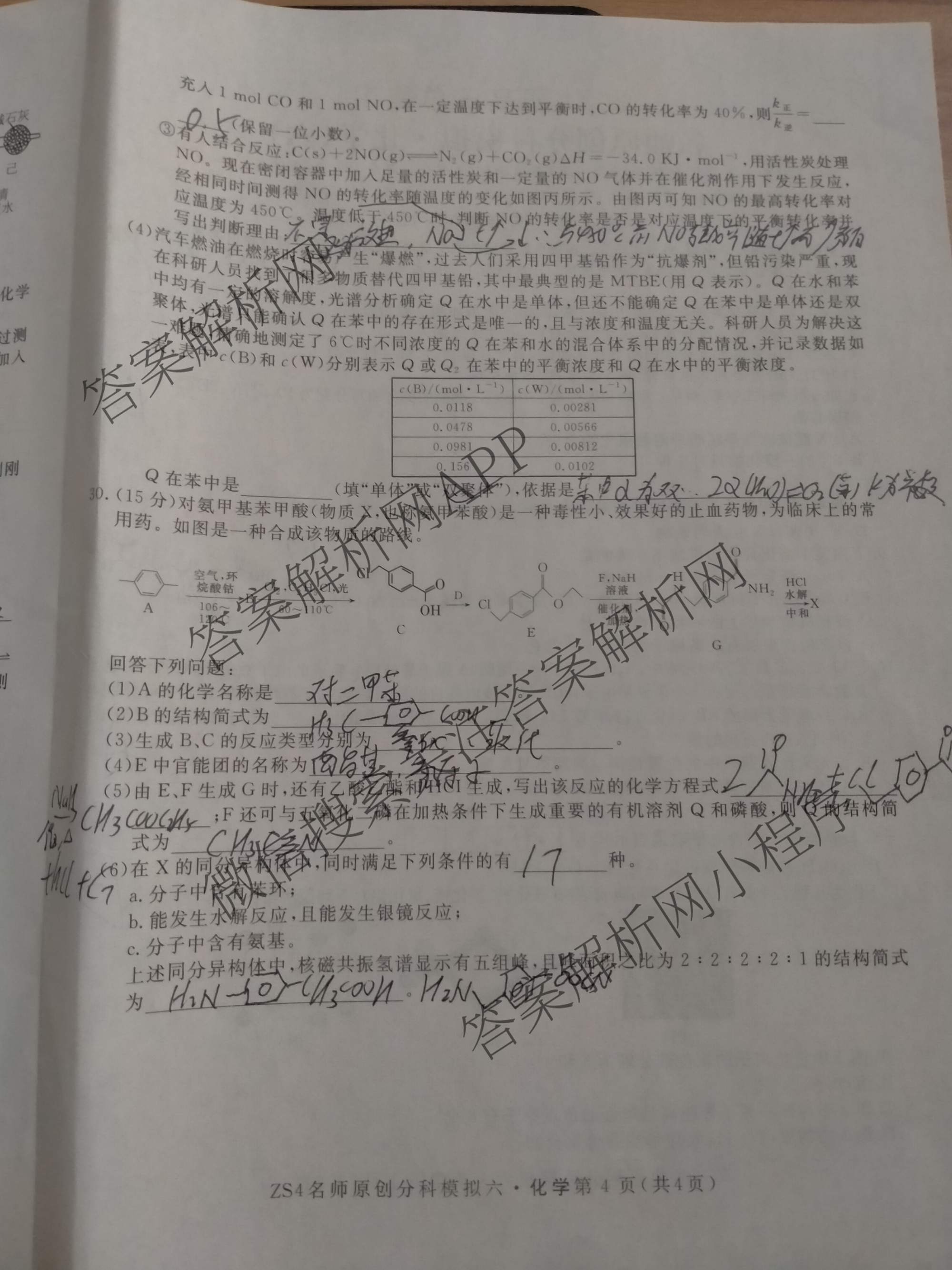 2024届高三总复习·名师原创分科模拟 化学(ZS4)(六)6试题,目前分科卷答案网已经汇总了2024届高三总复习·名师原创分科模拟 化学(ZS4)(六)6试题的各科答案和试卷,获取更多高三总复习·名师原创模拟答案解析,请在关注本站。