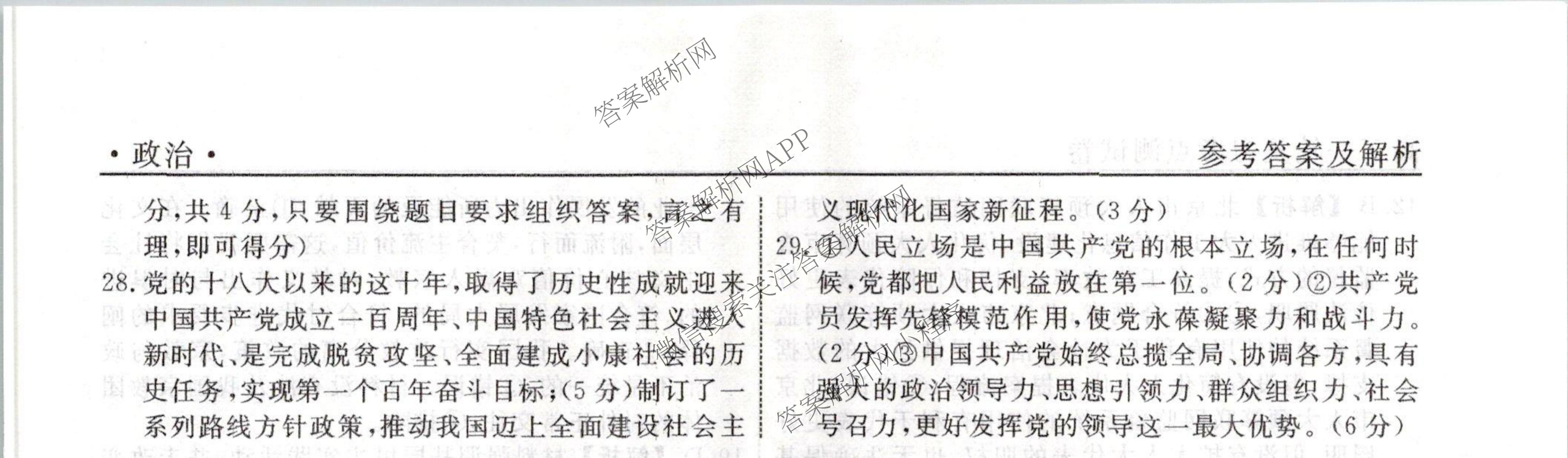 衡水名师卷2023-2024学年度高三一轮复习考点测试卷政治(90分钟⊙)(五)5答案