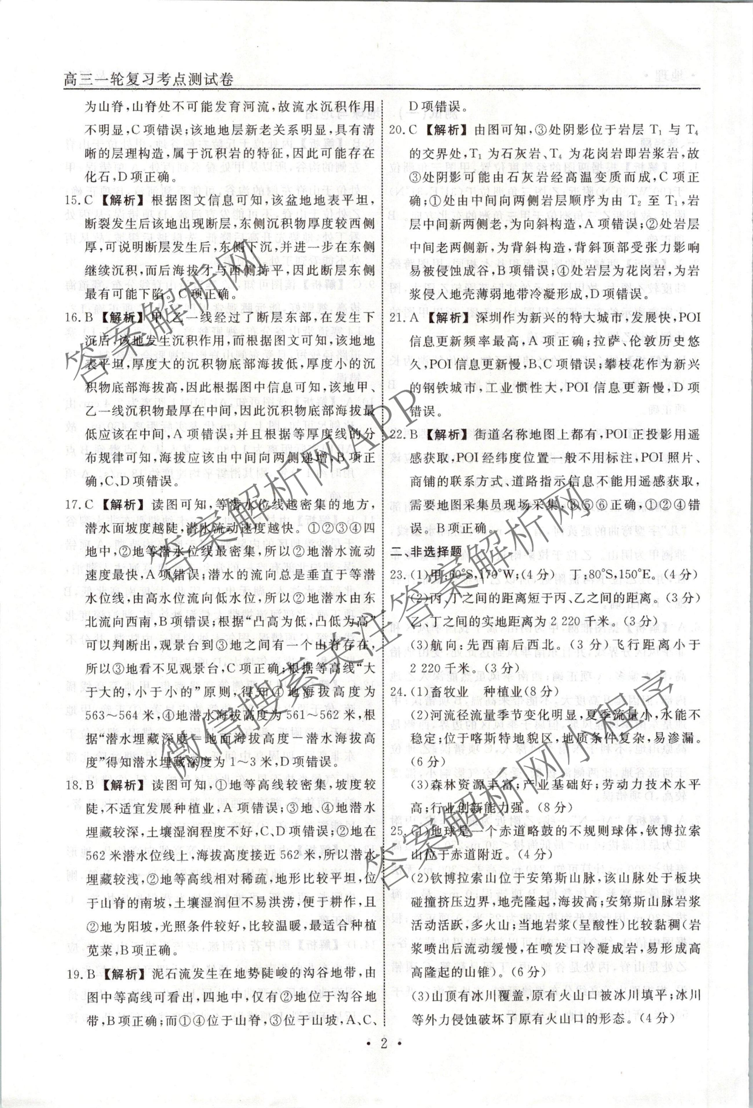 衡水名师卷2023-2024学年度高三一轮复习考点测试卷地理(90分钟⊙)(一)1答案