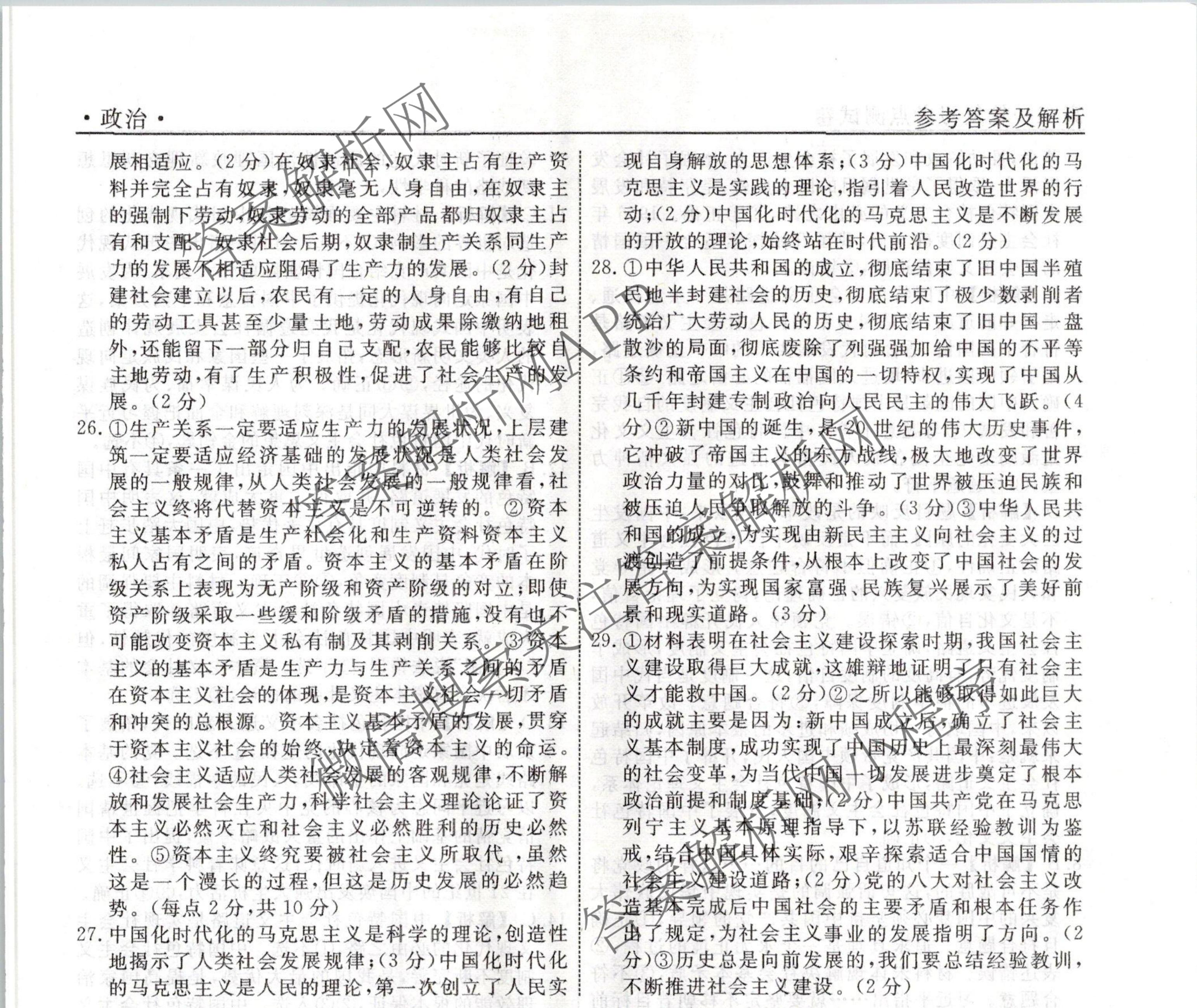 衡水名师卷2023-2024学年度高三一轮复习考点测试卷政治(90分钟⊙)(一)1答案