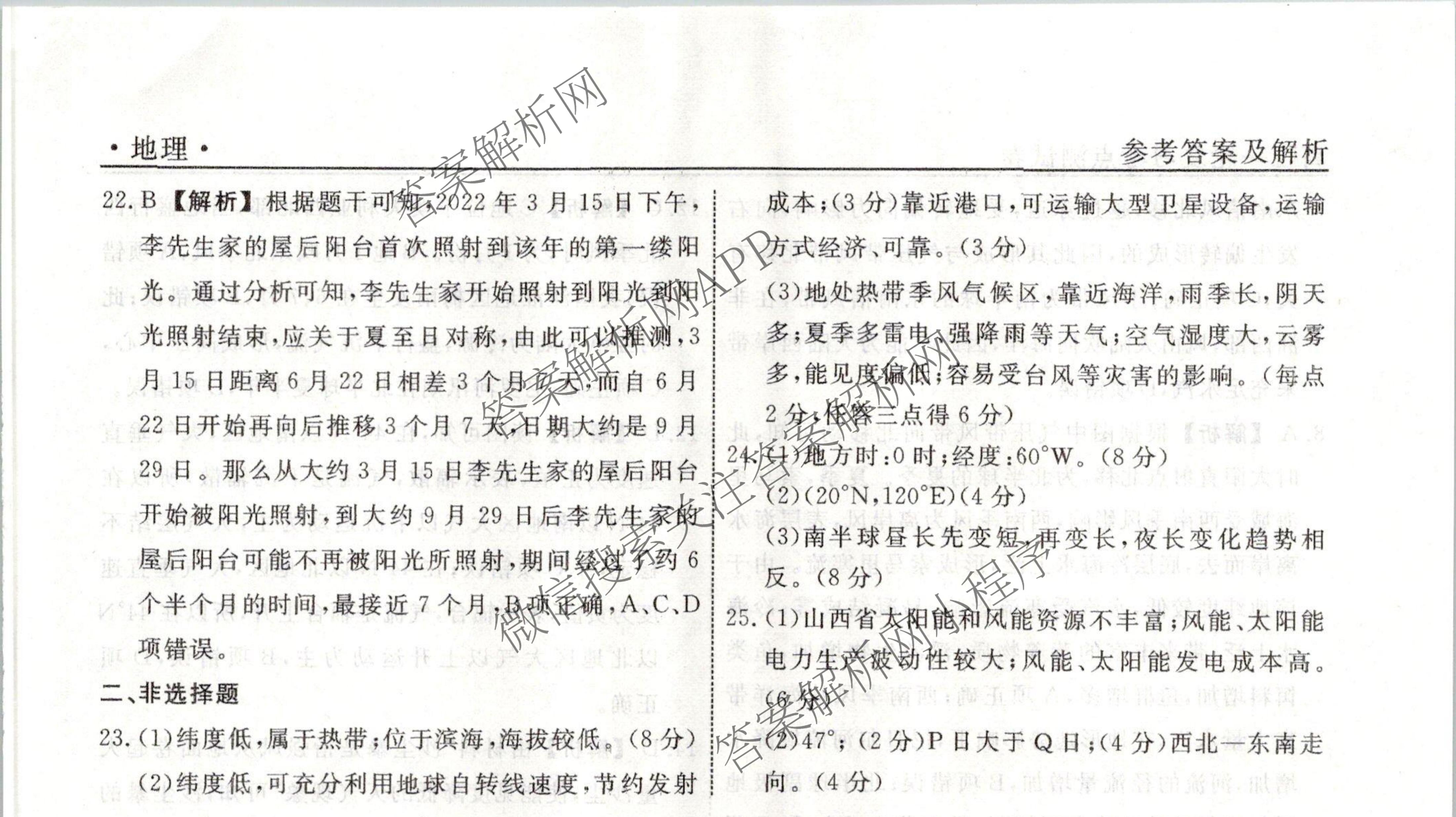 衡水名师卷2023-2024学年度高三一轮复习考点测试卷地理(90分钟⊙)(二)2答案