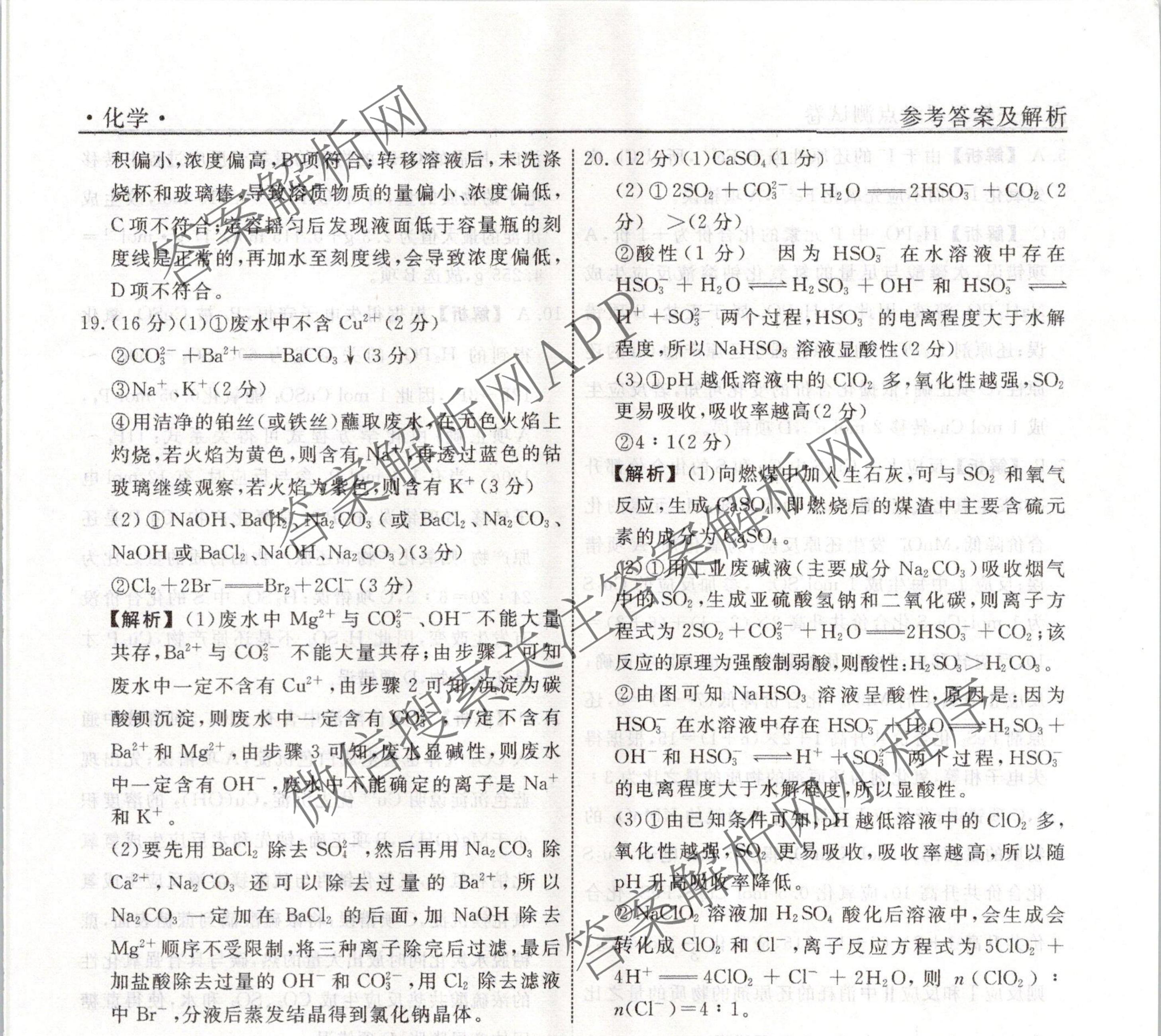 衡水名师卷2023-2024学年度高三一轮复习考点测试卷化学(90分钟⊙)(二)2答案
