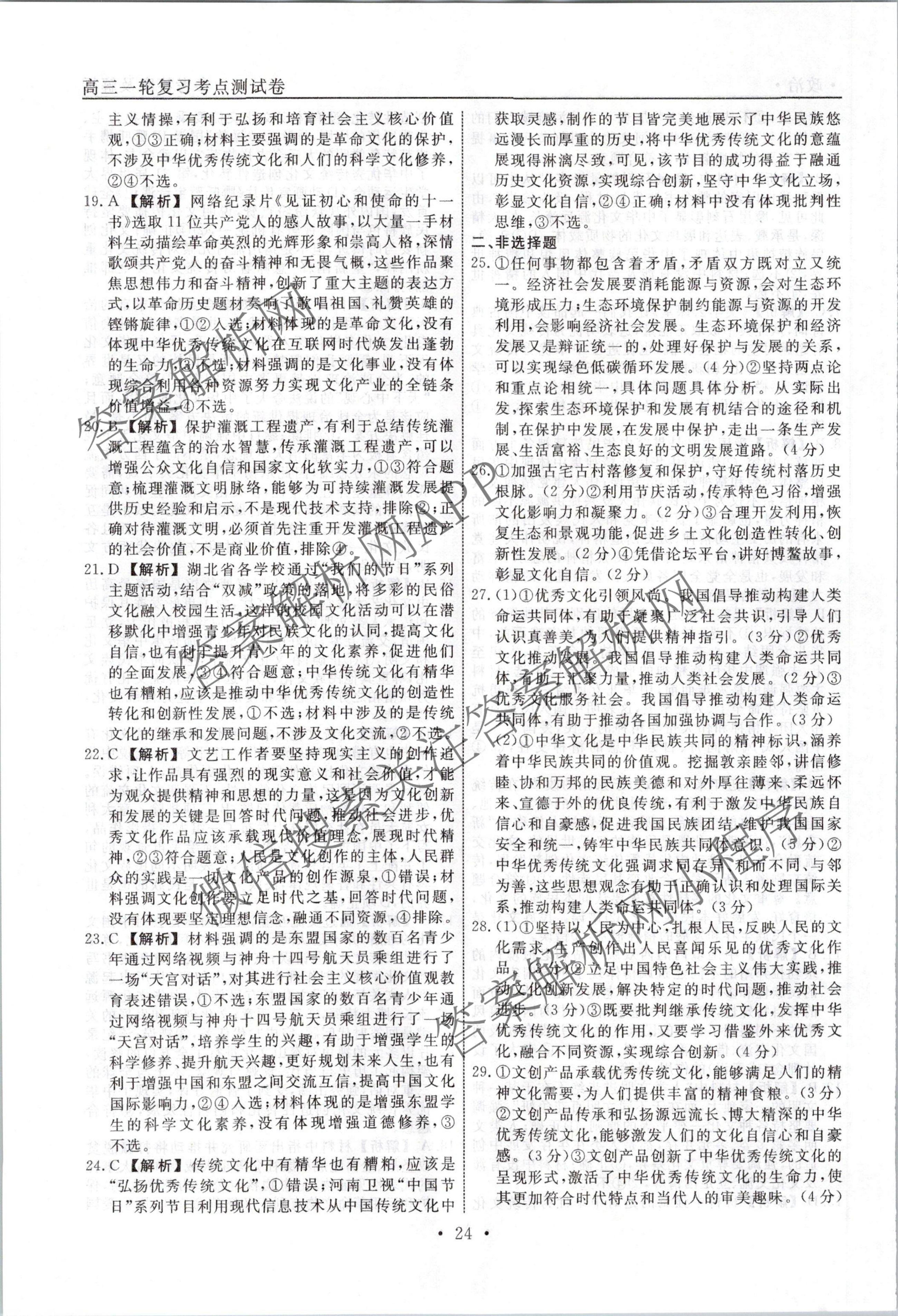 衡水名师卷2023-2024学年度高三一轮复习考点测试卷政治(90分钟⊙)(十)10答案