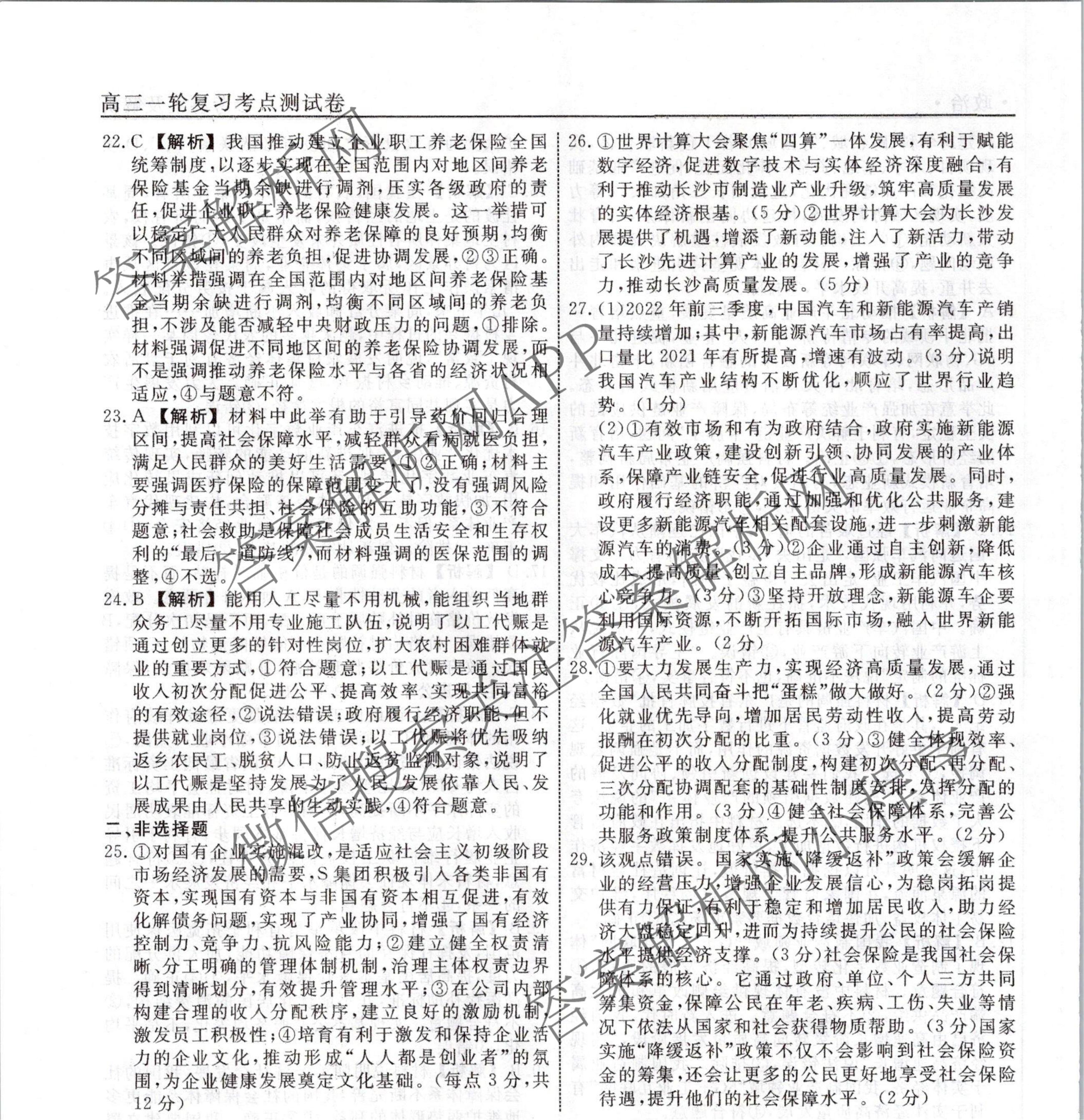 衡水名师卷2023-2024学年度高三一轮复习考点测试卷政治(90分钟⊙)(四)4答案