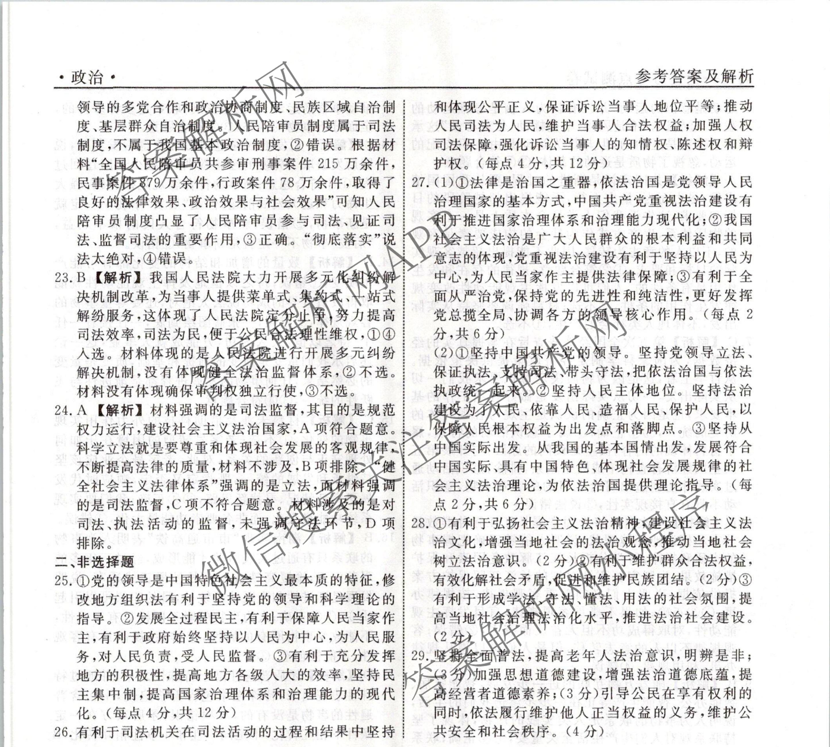 衡水名师卷2023-2024学年度高三一轮复习考点测试卷政治(90分钟⊙)(七)7答案