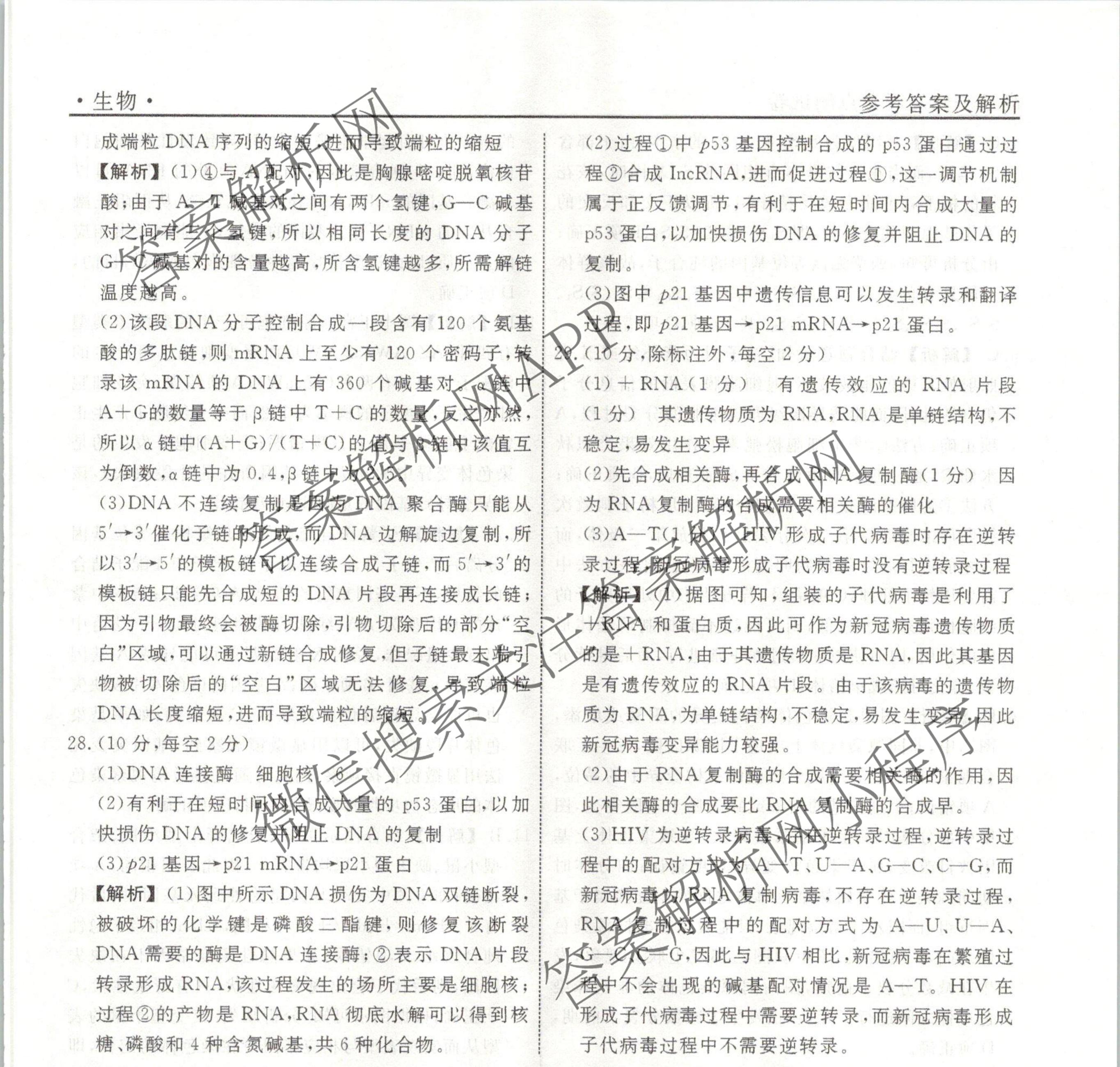 衡水名师卷2023-2024学年度高三一轮复习考点测试卷生物(90分钟⊙)(六)6答案