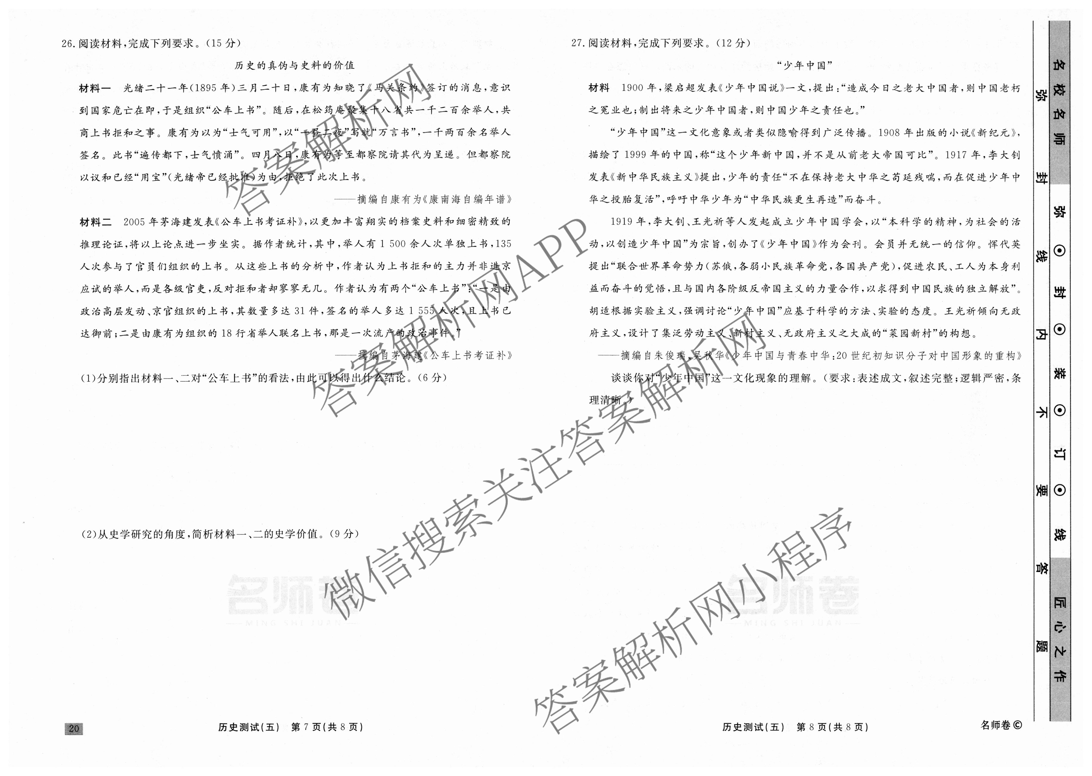 衡水名师卷2023-2024学年度高三一轮复习考点测试卷历史(90分钟⊙)(五)5试题