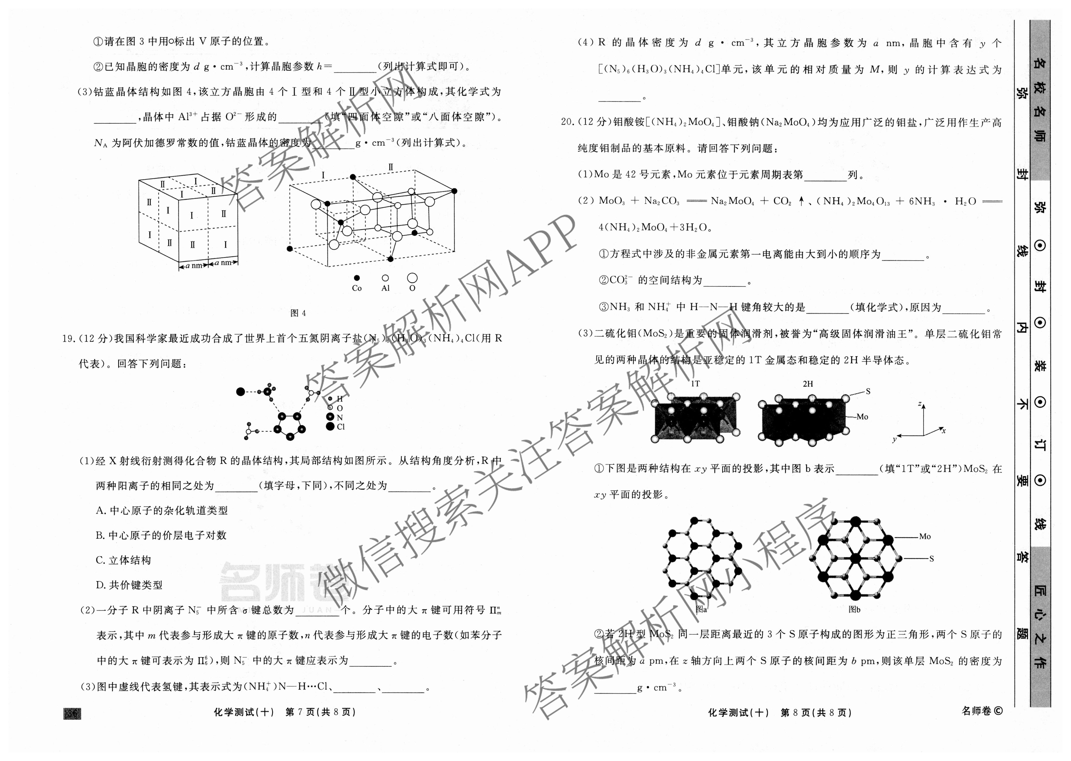 衡水名师卷2023-2024学年度高三一轮复习考点测试卷化学(90分钟⊙)(十)10试题