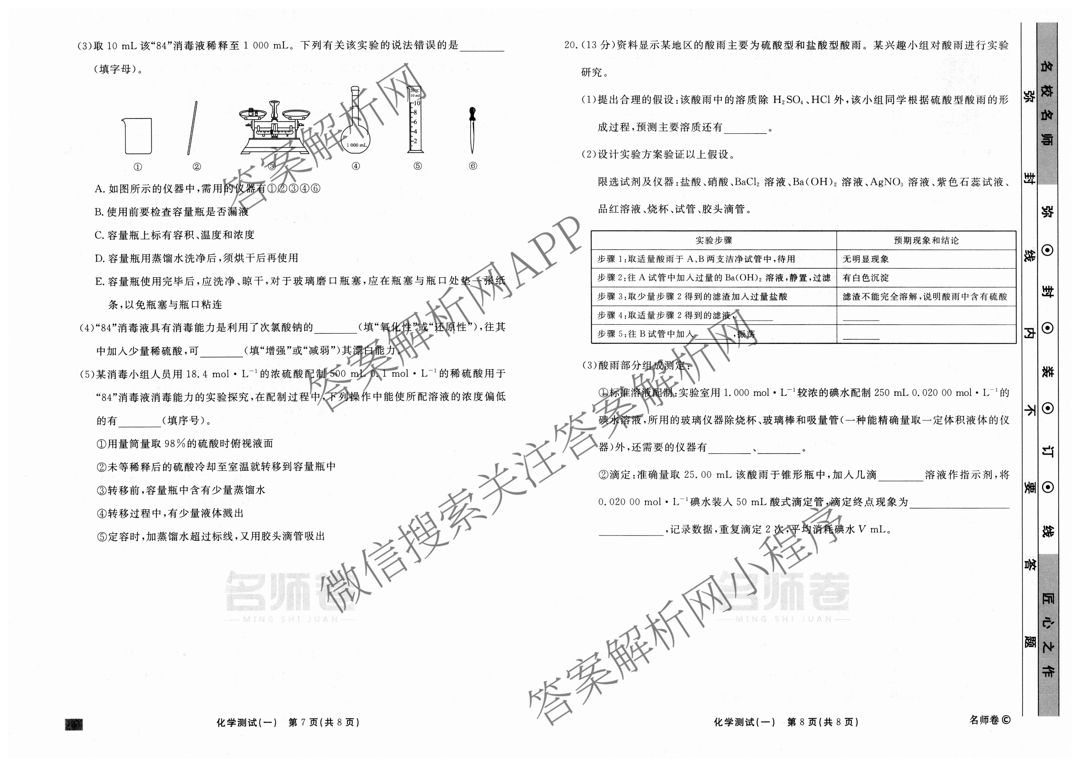 衡水名师卷·2023-2024学年度高三一轮复习考点测试卷·化学(90分钟·⊙)(一)1试题,目前分科卷答案网已经汇总了衡水名师卷·2023-2024学年度高三一轮复习考点测试卷·化学(90分钟·⊙)(一)1试题的各科答案和试卷,获取更多衡水名师卷答案解析,请在关注本站。