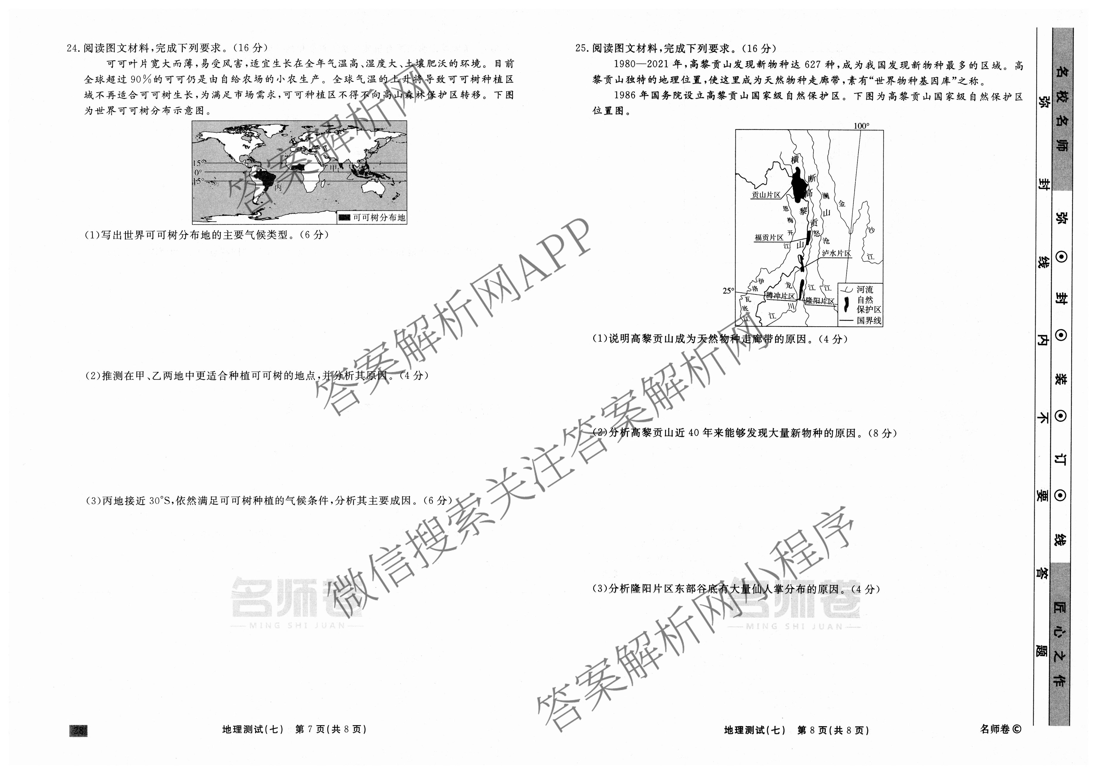 衡水名师卷2023-2024学年度高三一轮复习考点测试卷地理(90分钟⊙)(七)7试题