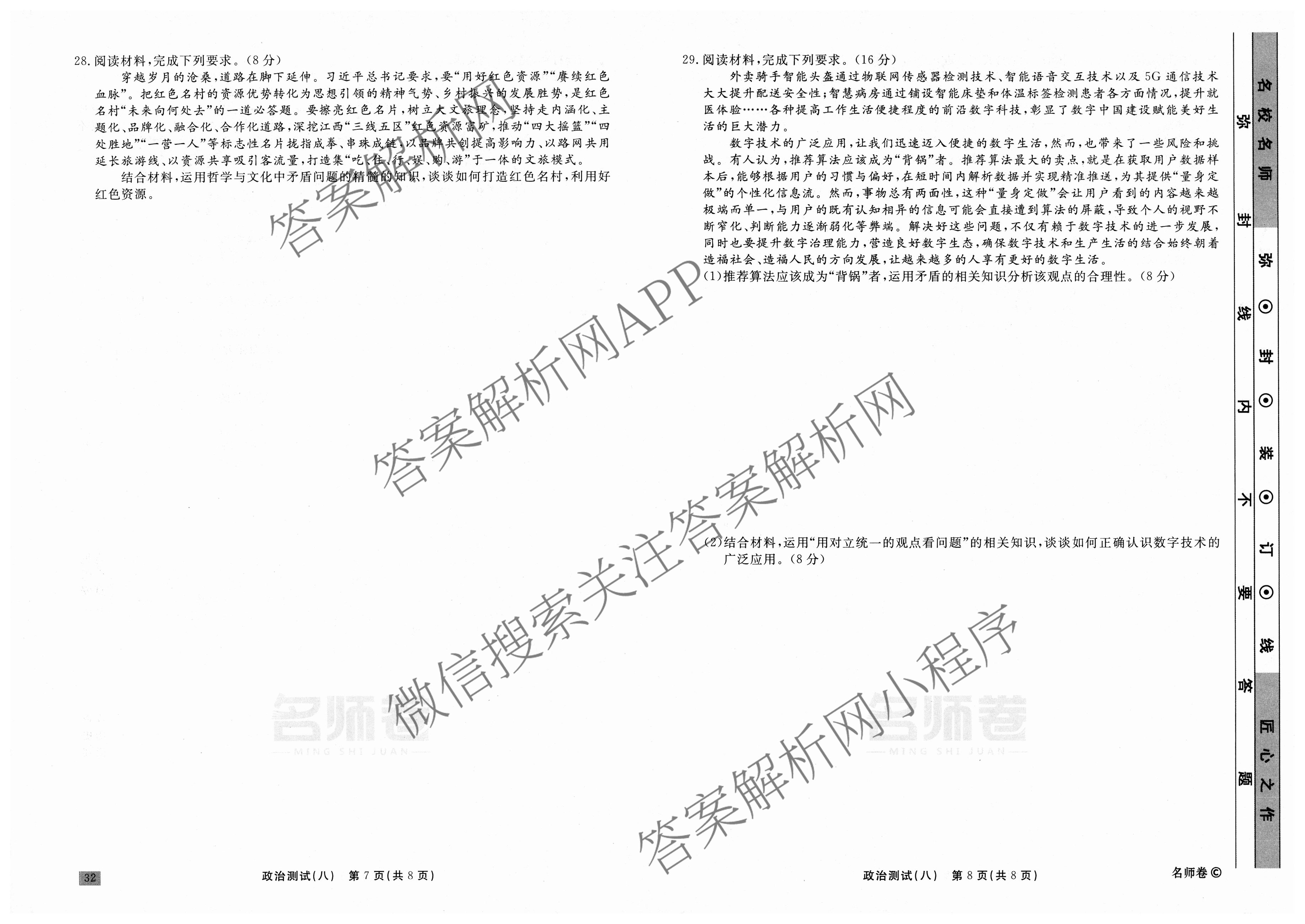 衡水名师卷2023-2024学年度高三一轮复习考点测试卷政治(90分钟⊙)(八)8试题