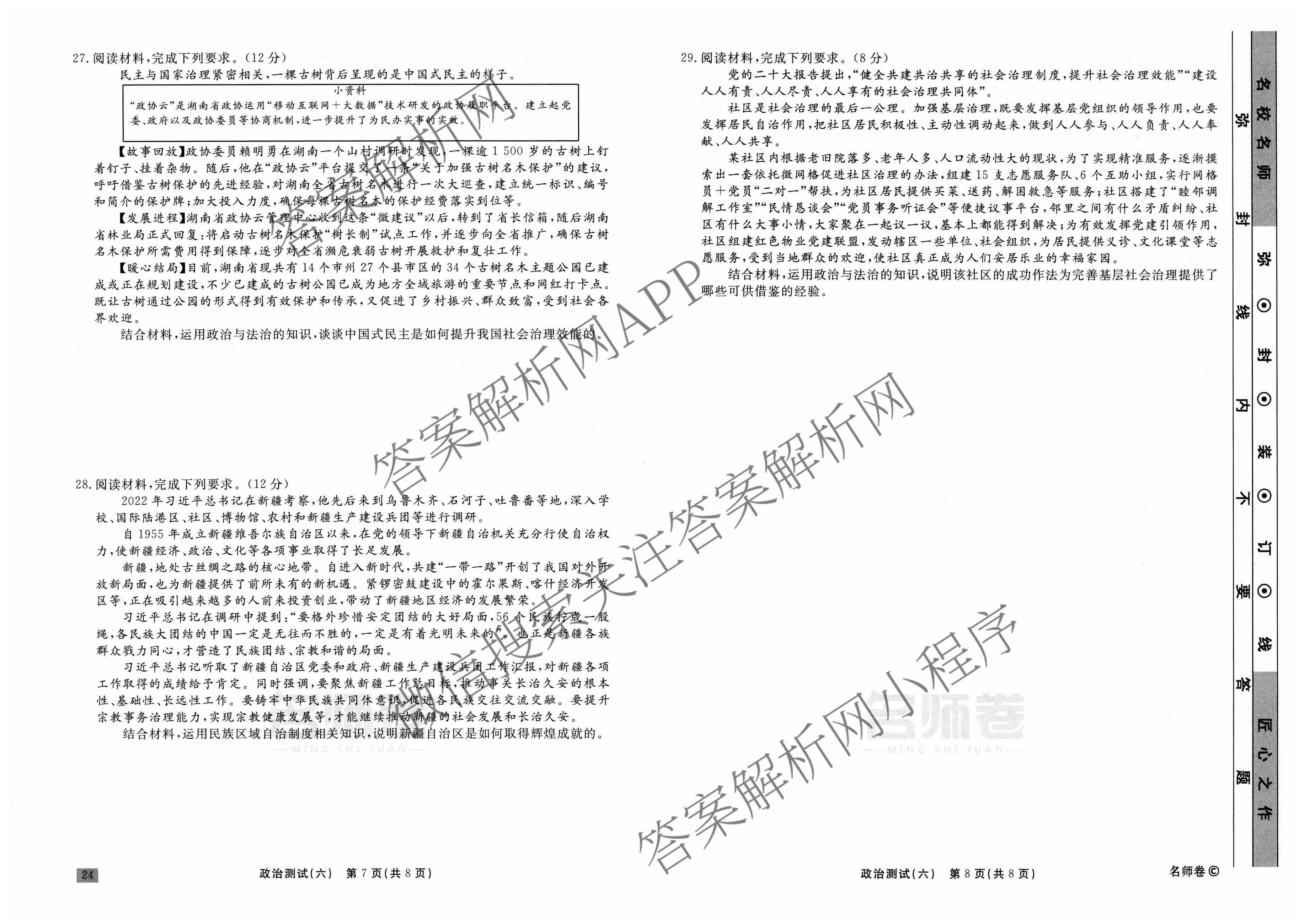 衡水名师卷2023-2024学年度高三一轮复习考点测试卷政治(90分钟⊙)(六)6试题