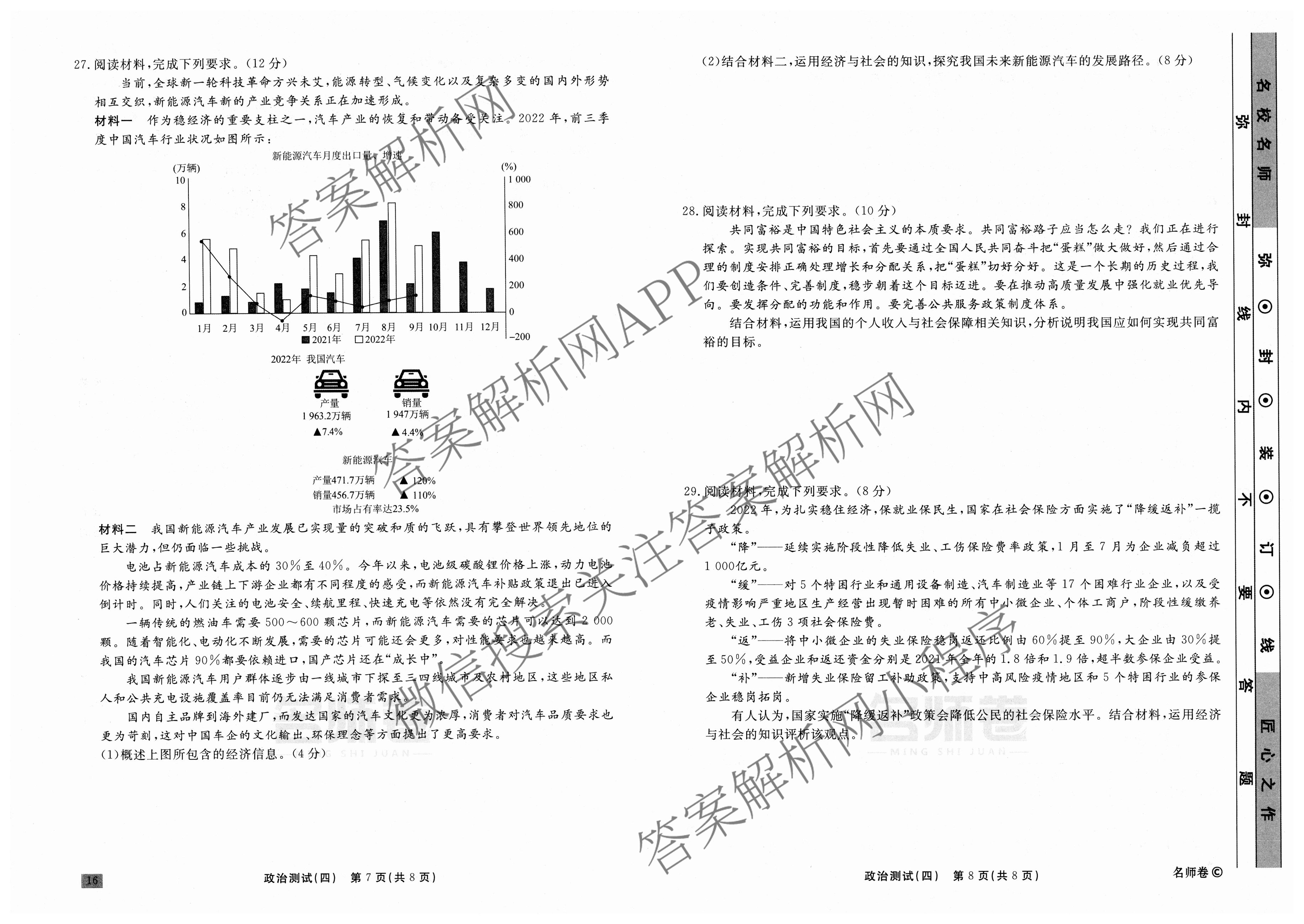 衡水名师卷2023-2024学年度高三一轮复习考点测试卷政治(90分钟⊙)(四)4试题