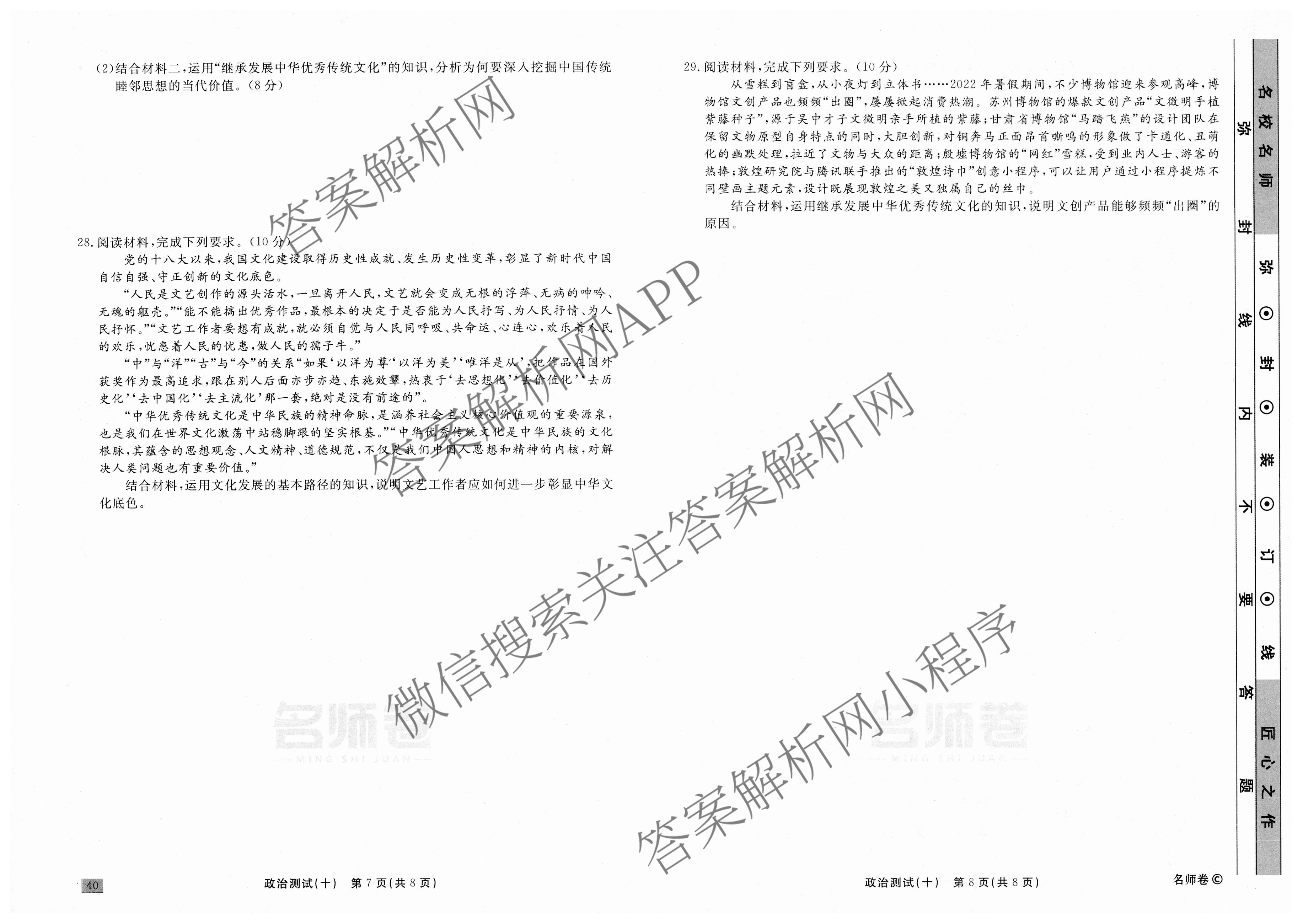 衡水名师卷2023-2024学年度高三一轮复习考点测试卷政治(90分钟⊙)(十)10试题